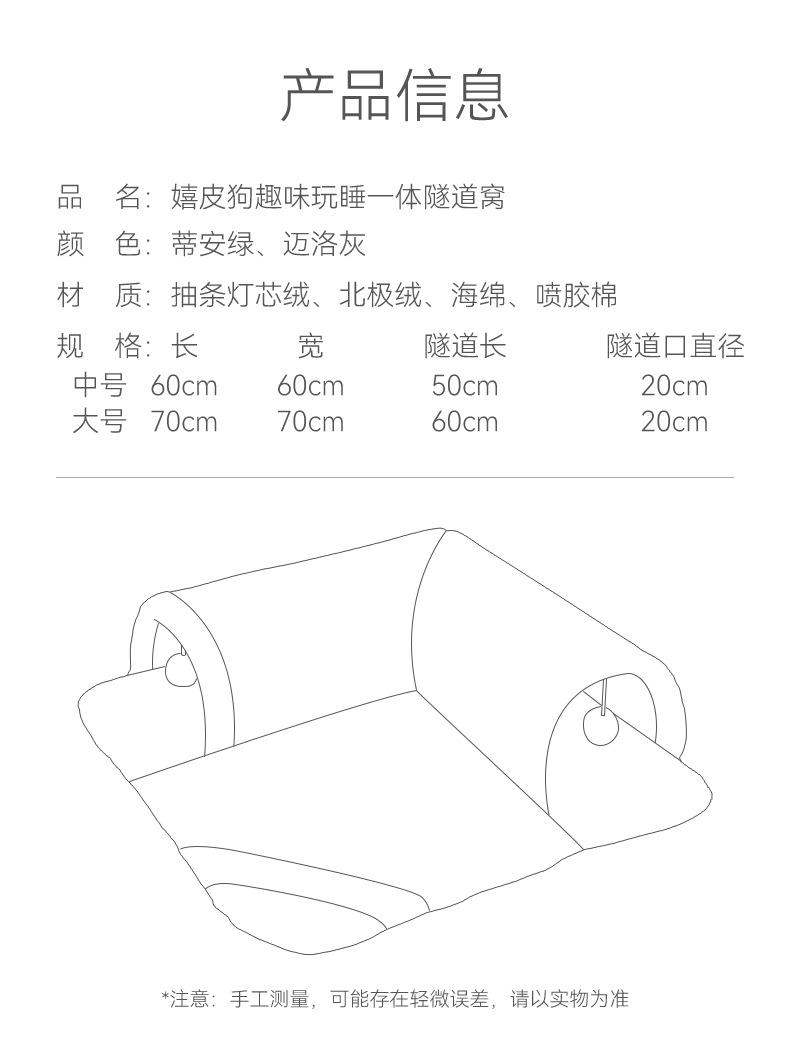 L:Tamaño del cojín 70*70 (longitud del túnel 60*60, ancho de la puerta del túnel 25)