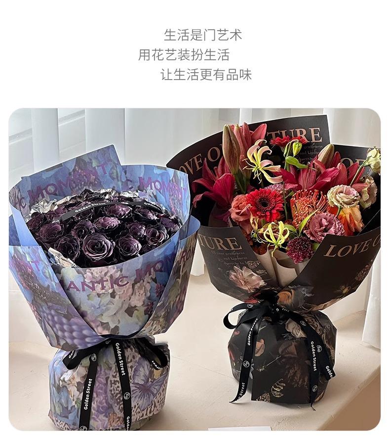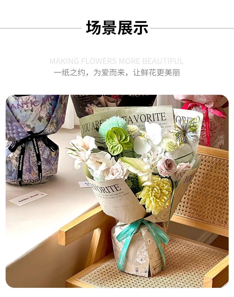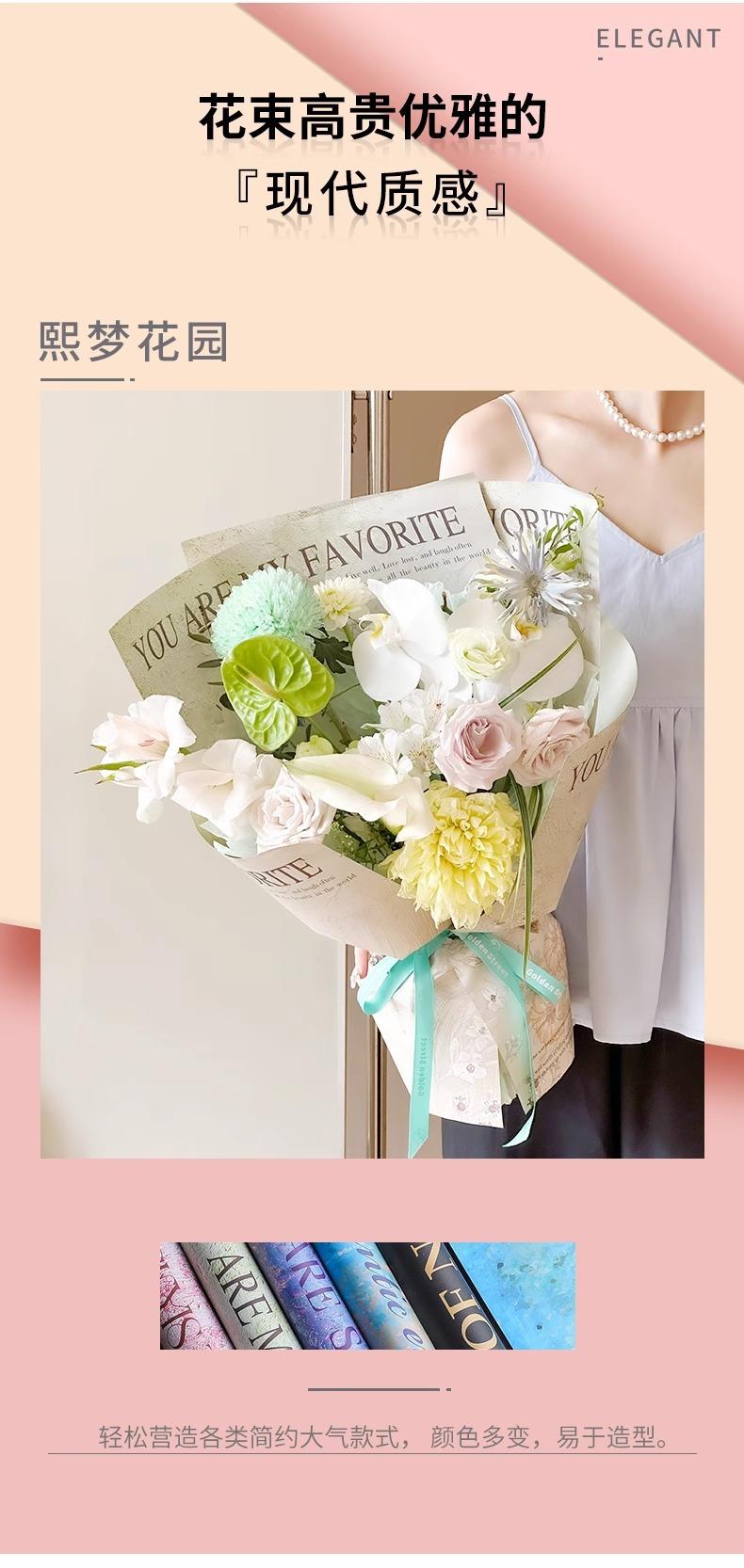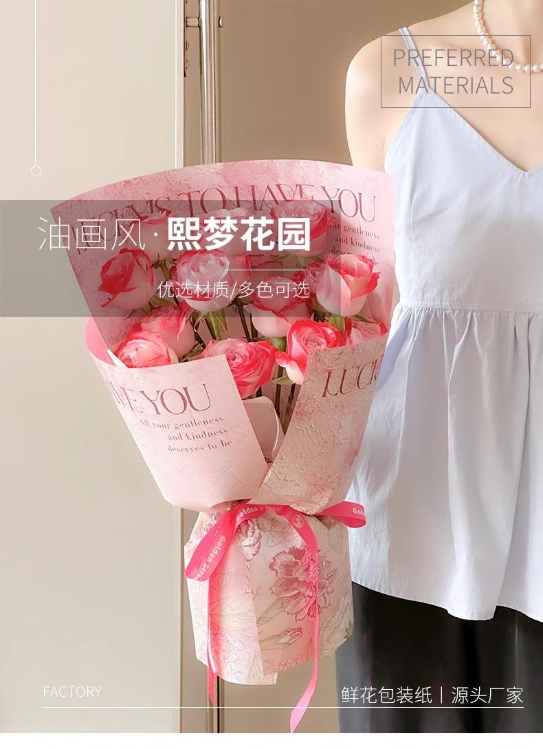 Papel de envolver flores estilo pintura al óleo jardín de ensueño Pensamiento de siete colores embalaje floral papel de regalo de piel de vaca de alta calidad