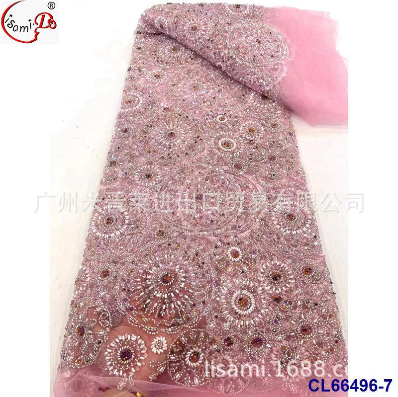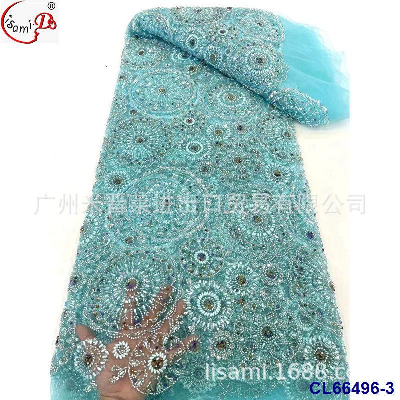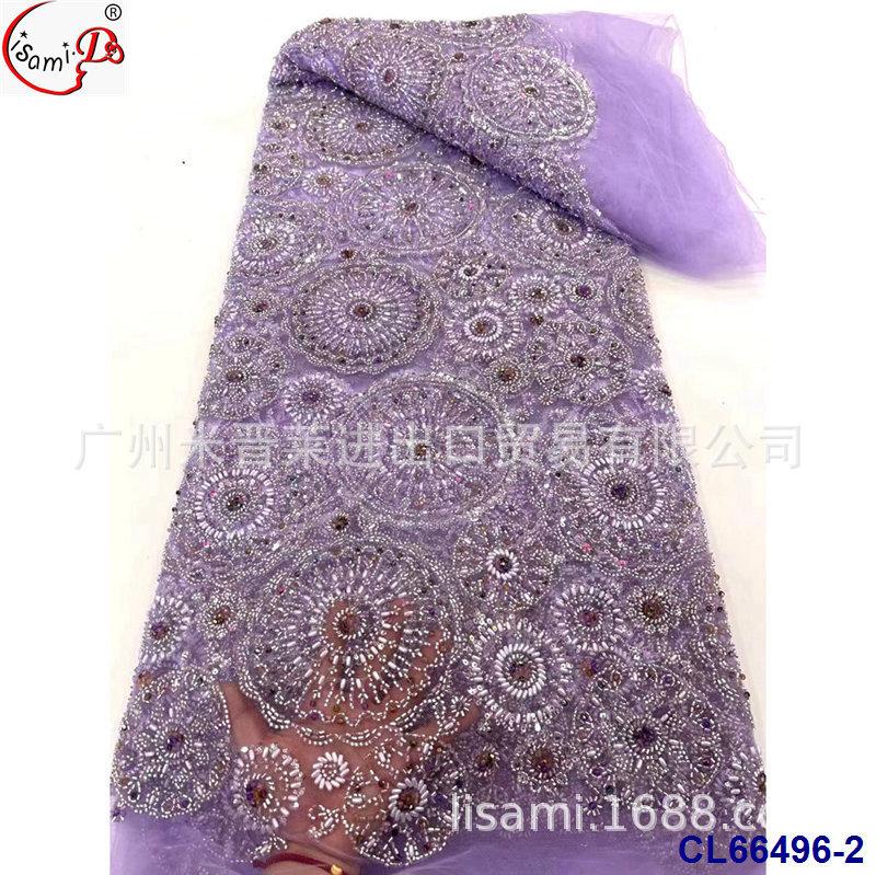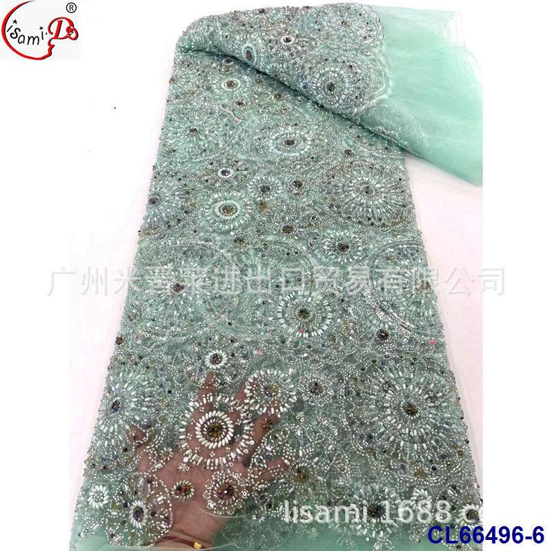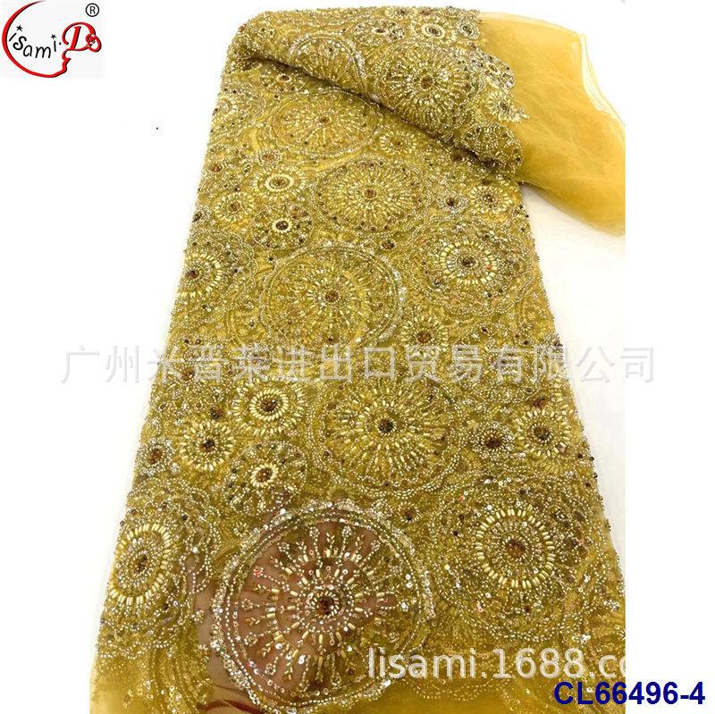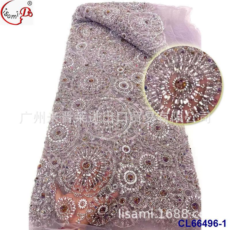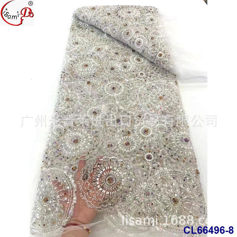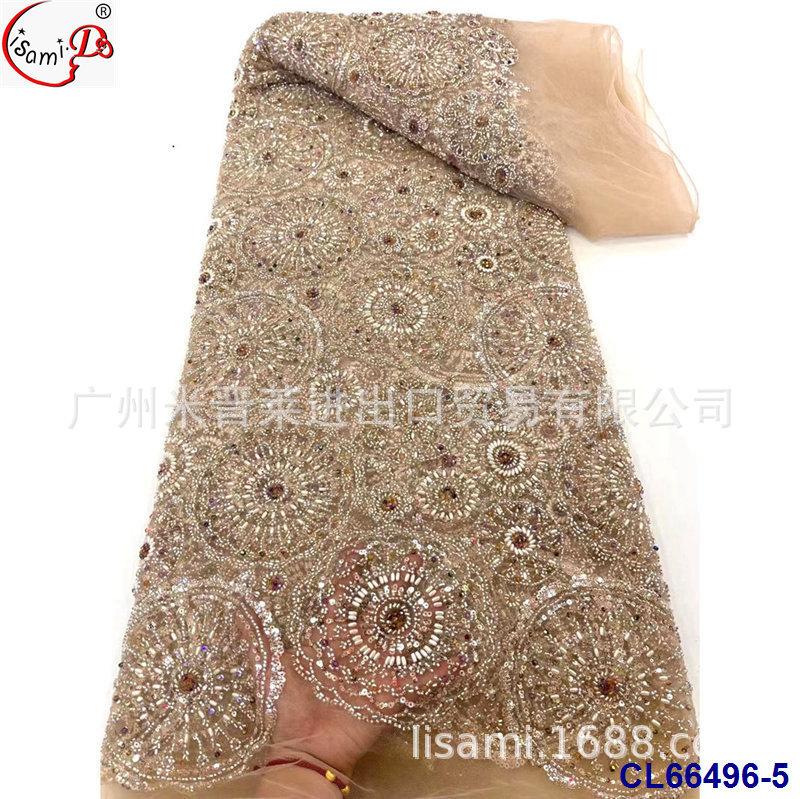 Vestido de novia francés versión completa bordado con cuentas de diamantes de tela de encaje de lentejuelas de novia tela de encaje
