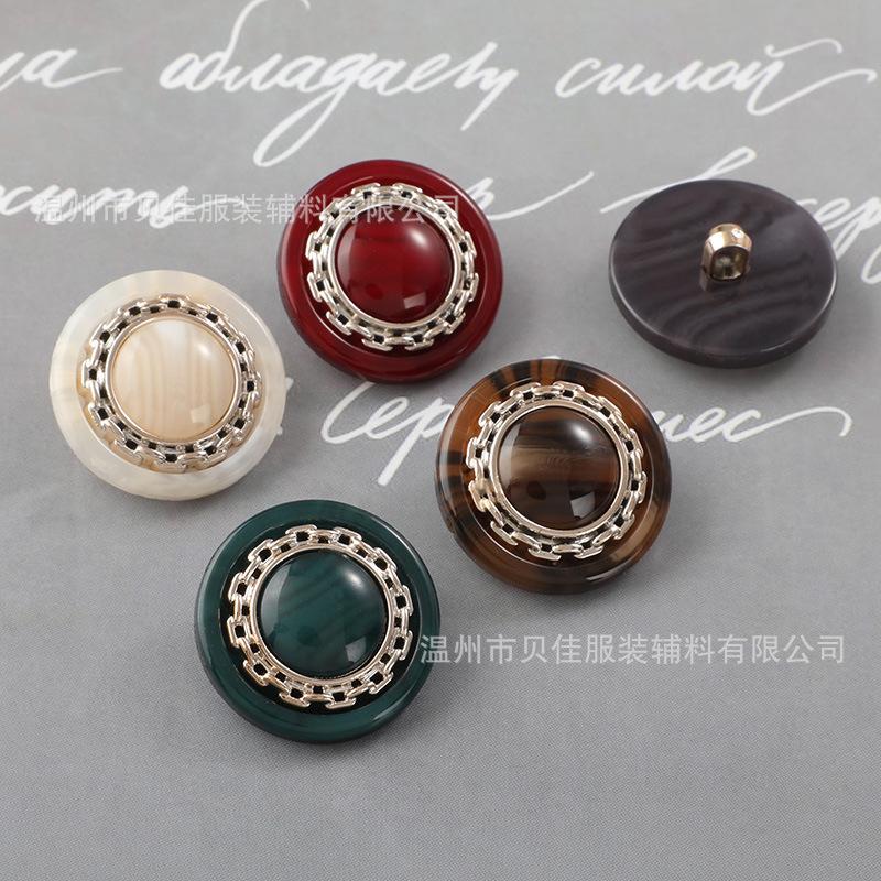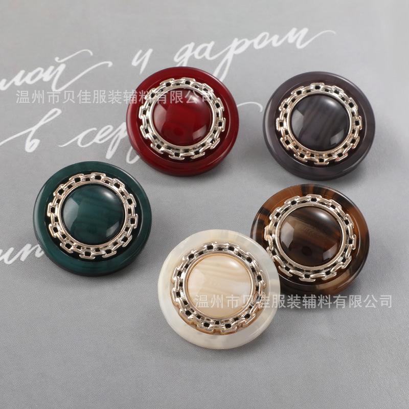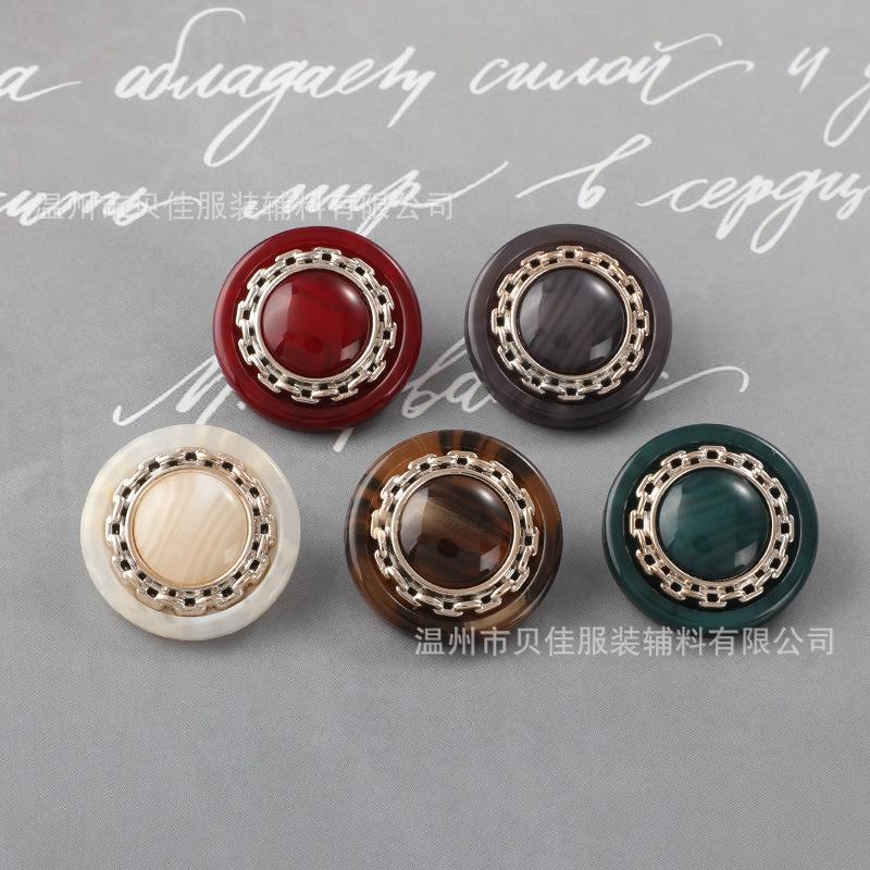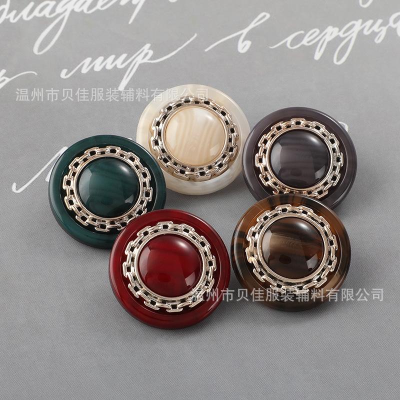 Botón de traje de resina retro Xiaoxiang, botón de abrigo de doble cadena, botón de suéter de punto de doble cara de cachemira para mujer