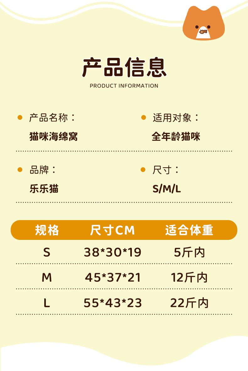 [Nombre del producto]: Cama de esponja de gato de dibujos animados S/M/L