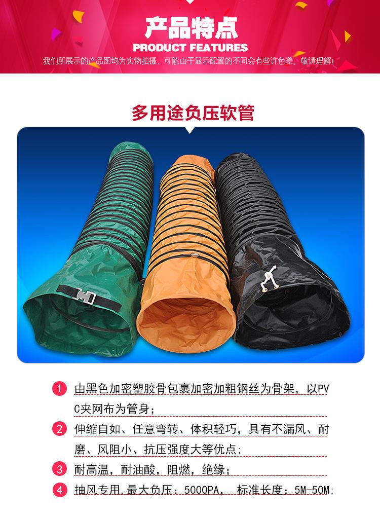 2、Es una buena opción para suministro y extracción de aire en extracción de humos de soldadura de barcos, ventilación de túneles, ingeniería, fábricas, mantenimiento de cables subterráneos, grandes supermercados, canales y almacenes experimentales, etc. Se puede utilizar con ventiladores portátiles para suministrar y extraer aire, eliminar humo y polvo, y mejorar el aire. El soplador de aire caliente puede suministrar aire caliente, ventilación en granjas de cría, etc.