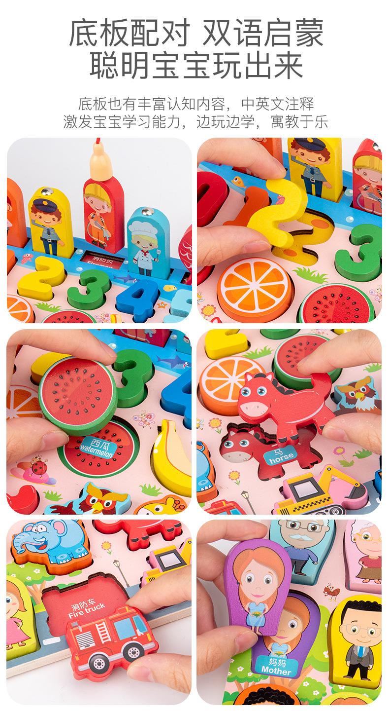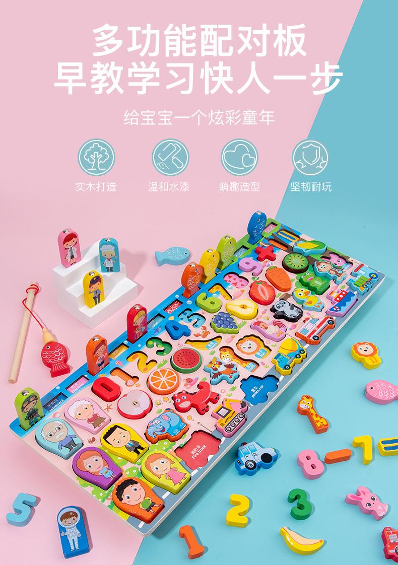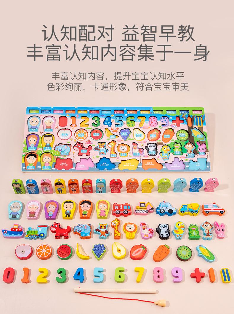 Juguetes de bloques de construcción de pesca gráfica todo en uno de madera para niños, educativos, de educación temprana, desarrollo cognitivo, tablero de rompecabezas mental, tablero logarítmico