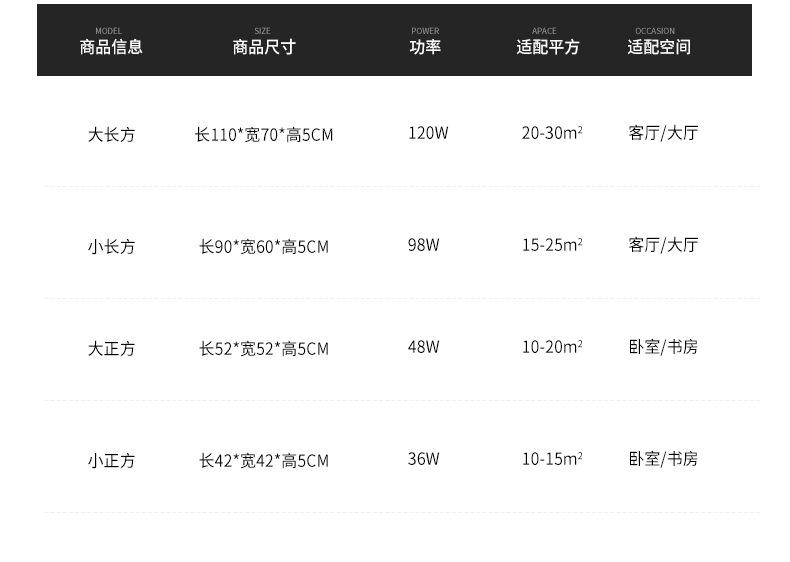 Rectangular 110*70cm120w, Rectangular 90 * 60cm98W, Square 52cm48w, Square 42cm36w, Star Moon 48cm48W, 8 words...