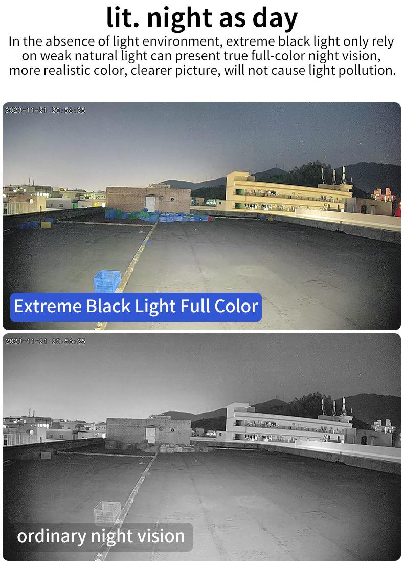 Cámara de vigilancia solar 4G para exteriores, impermeable, con WiFi, bajo consumo, luz negra, visión nocturna y batería.