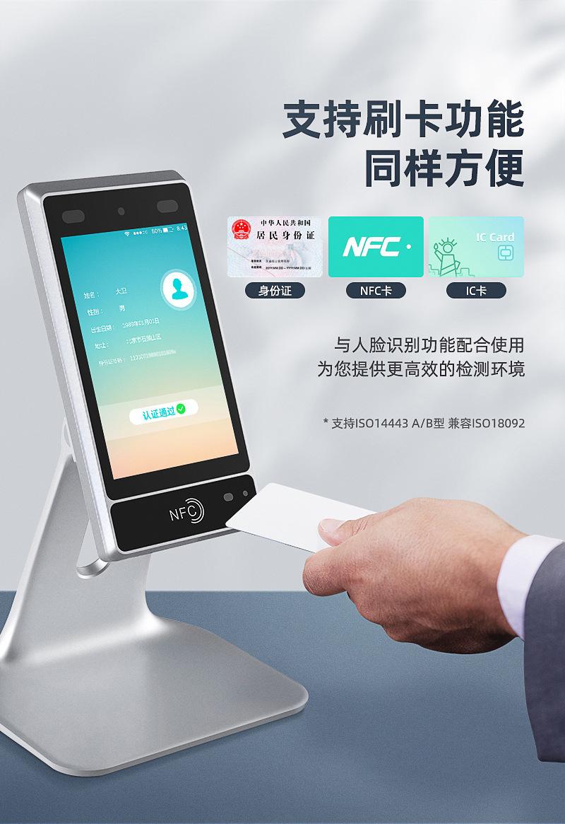 La máquina integrada para visitantes con reconocimiento facial inteligente Telpo TPS980 admite la función personalizada de lectura de tarjetas NFC, es compatible con el tipo ISO14443 A/B y es compatible con ISO18092. El Telpo TPS980 se puede personalizar para adoptar el reconocimiento híbrido de identidad, combinando la función de lectura de tarjetas de identificación de segunda generación con la función de reconocimiento facial para proporcionar a los usuarios un entorno de reconocimiento más eficiente.
