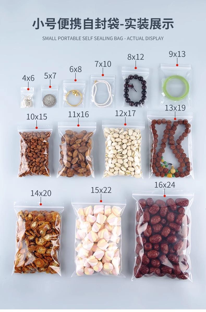 Bolsa de plástico transparente autosellable, gruesa y pequeña, para conservar alimentos frescos, de PE, para embalaje grande.