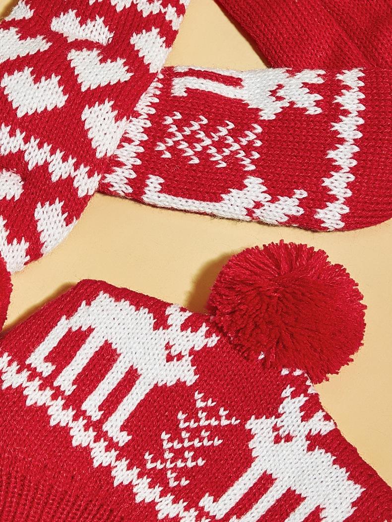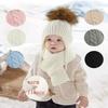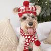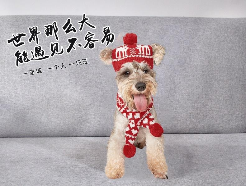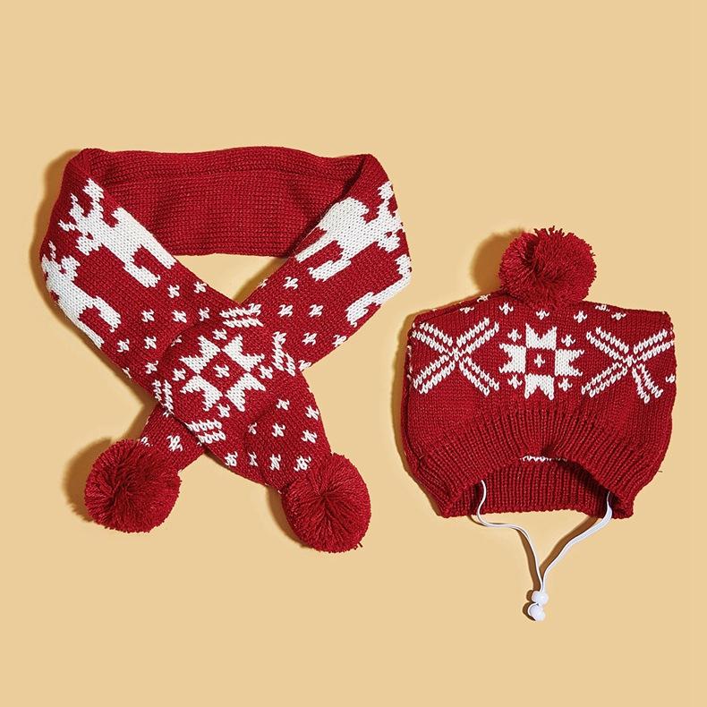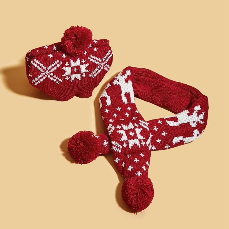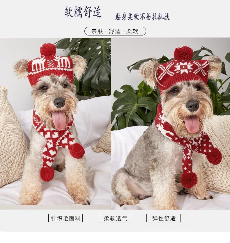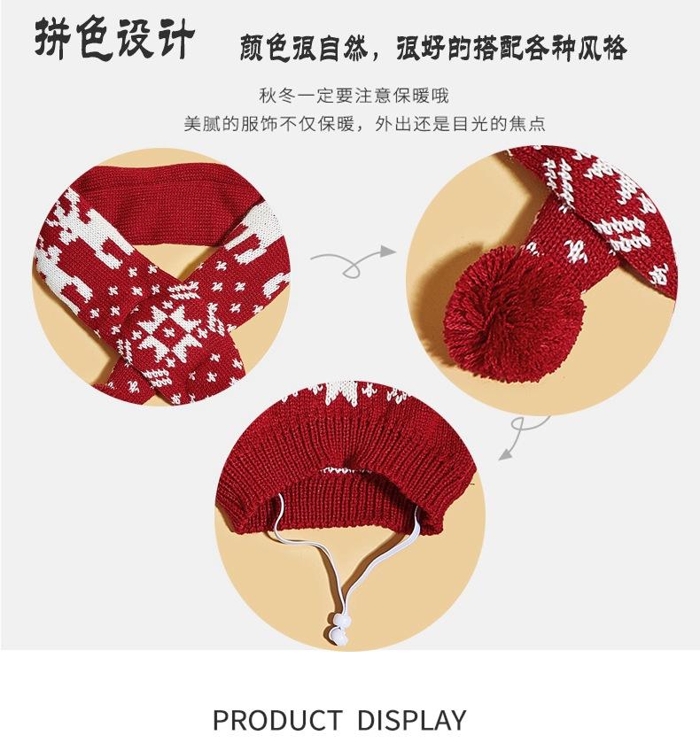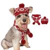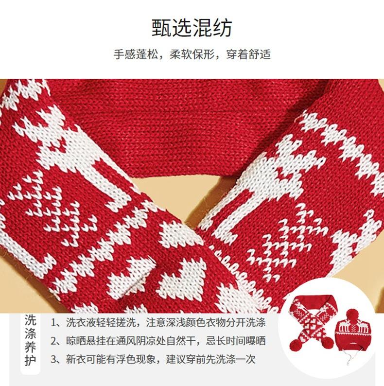 Nombre del producto: Set de dos piezas de bufanda y gorro navideños de punto para mascotas de otoño e invierno, con pompón de pelo de ciervo, elástico y ajustable, accesorios para cachorros