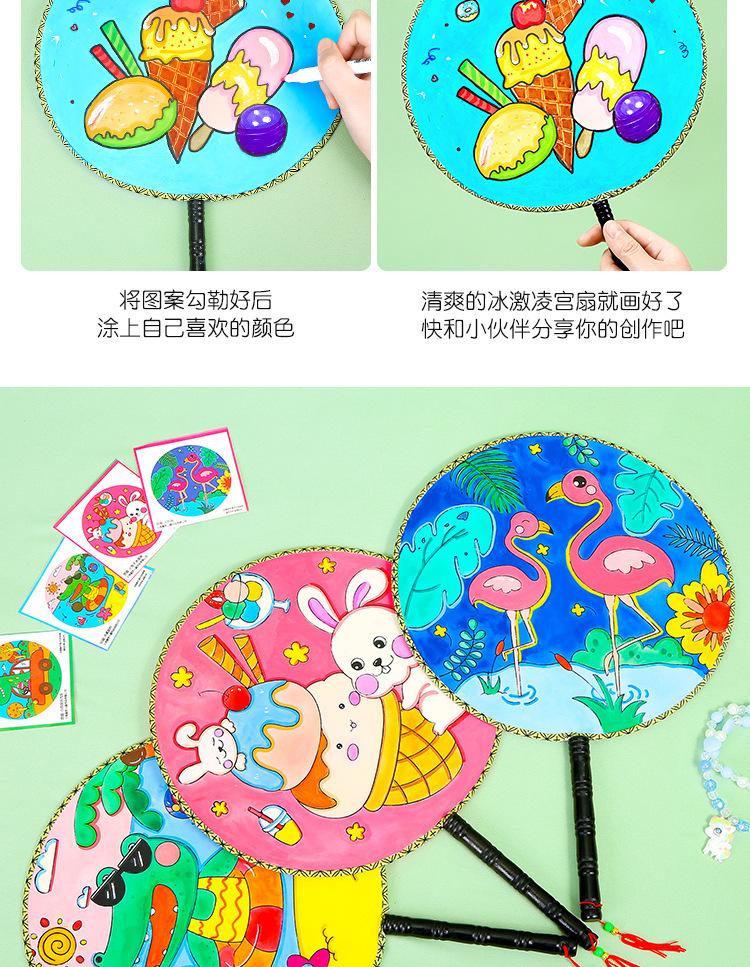 Abanico de Palacio de Dibujos Animados para niños, pintura hecha a mano, abanico de grupo, abanico de grafiti pintado a mano, materiales de arte creativo al por mayor