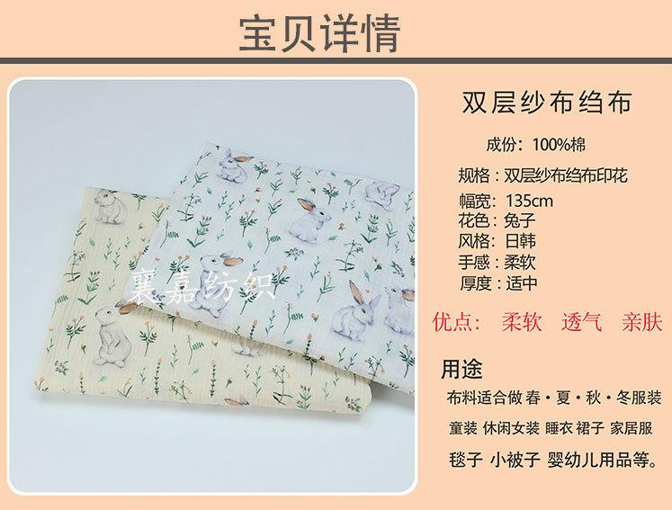 Algodón para bebé gasa de doble capa conejo lindo ropa para niños pijama edredón manta tela