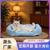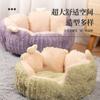 Caseta universal para mascotas, redonda, gris, para las cuatro estaciones, cálida y gruesa, con cojín de franela y flores, para gatos y perros.