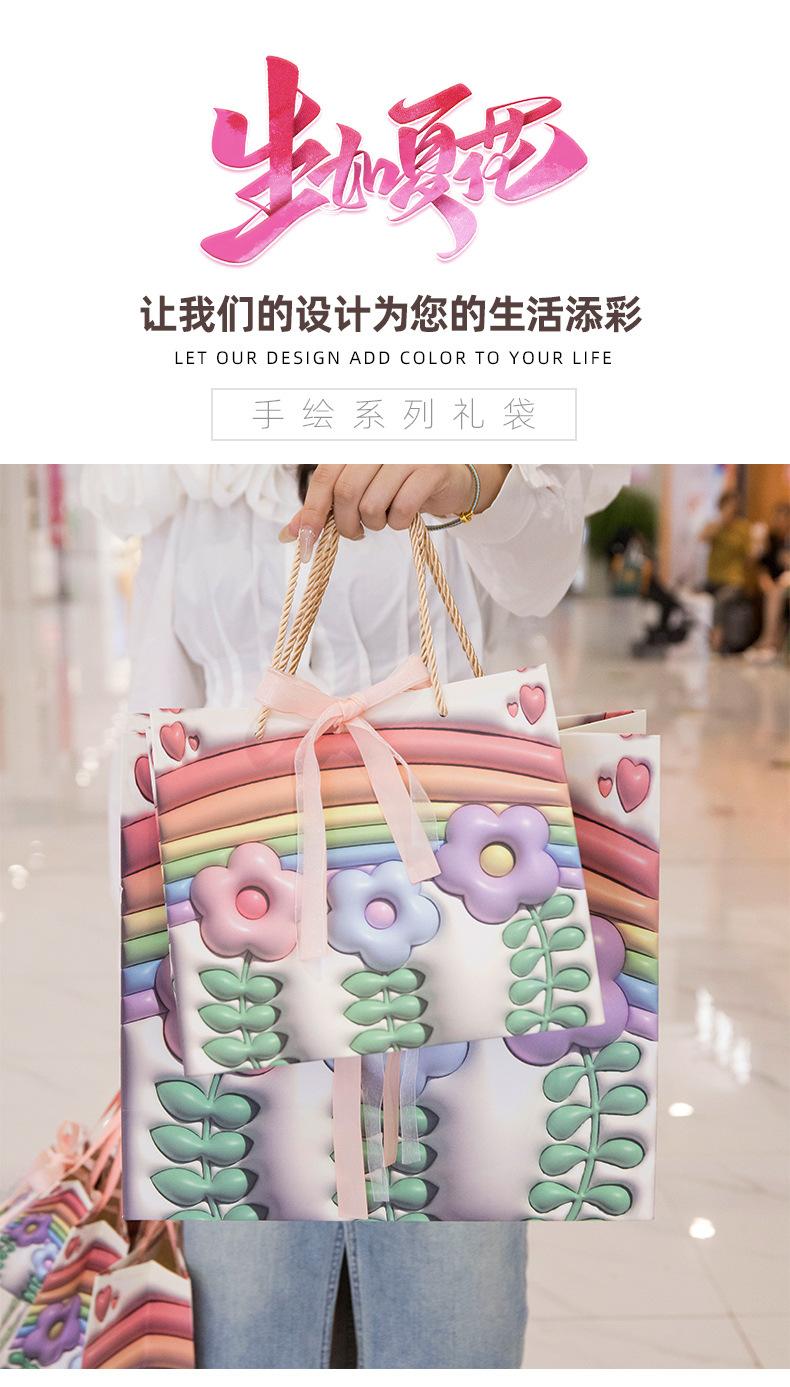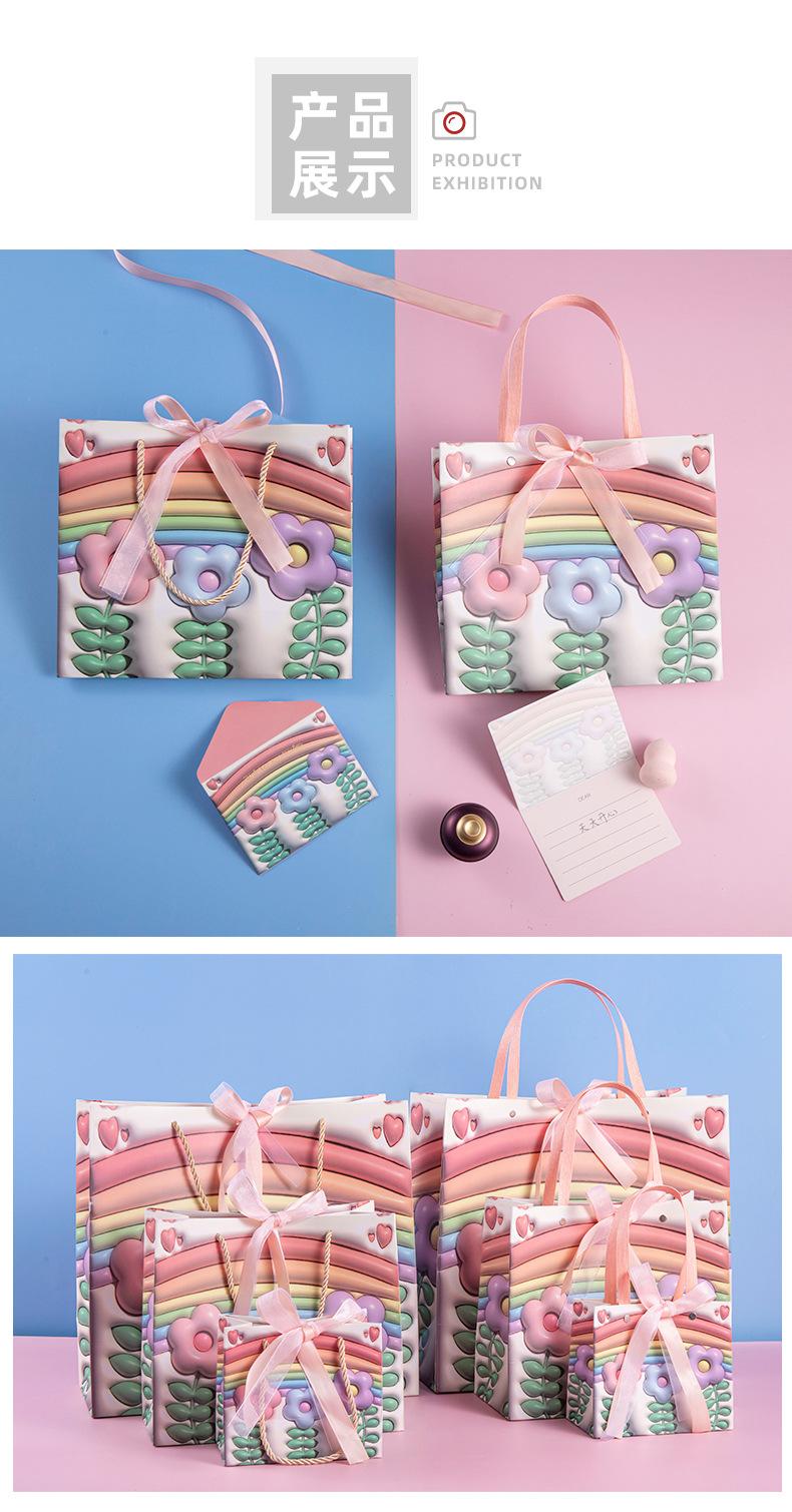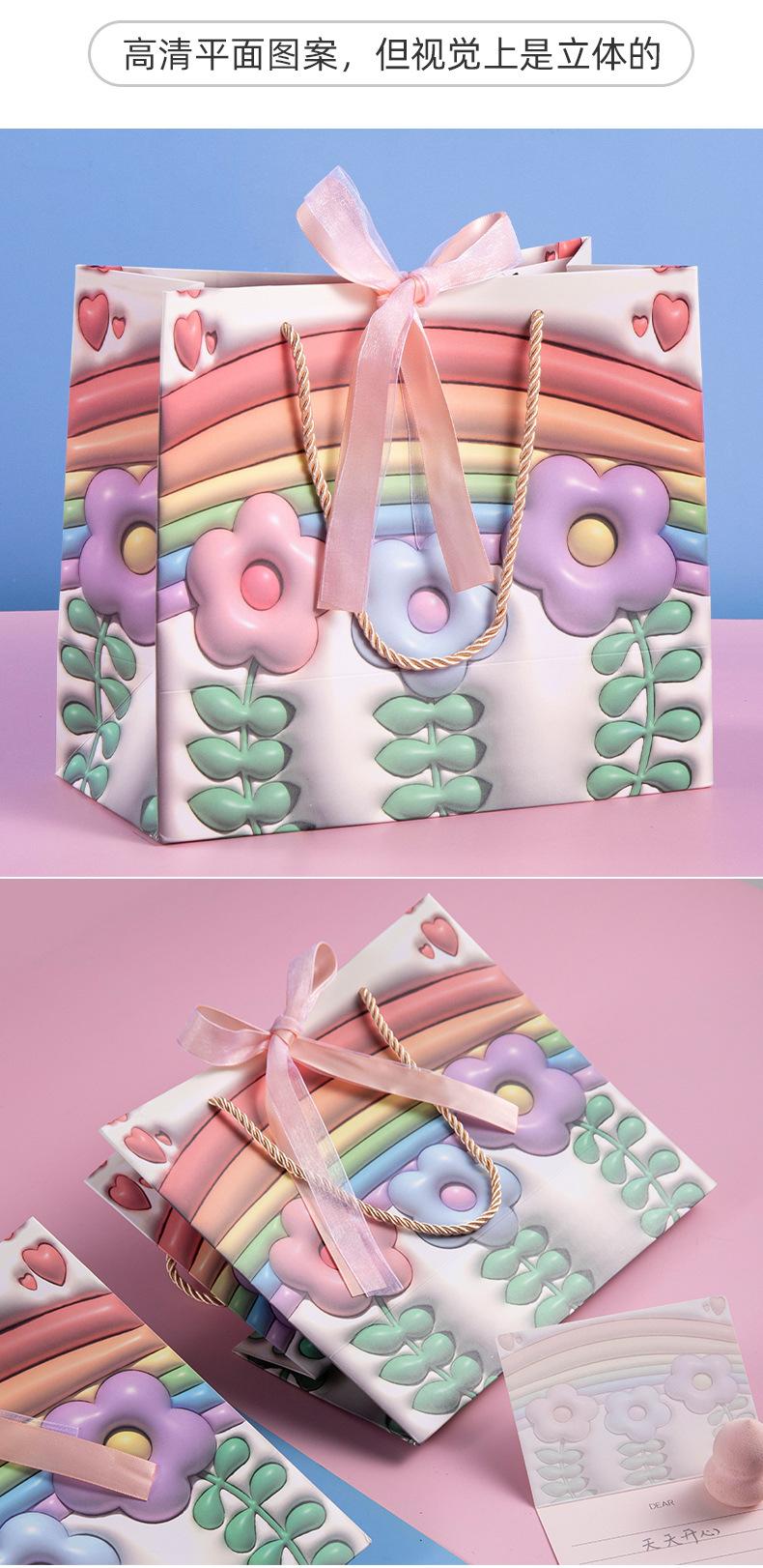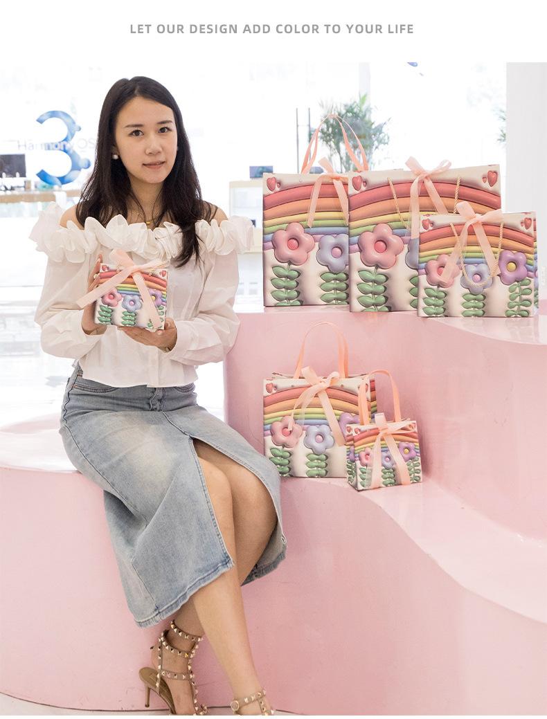 Bolsa de regalo para el Día del Niño con diseño de flores de arcoíris, bolsa grande para compras, bolsa para ropa de cumpleaños de niña, bolsa para empaquetar regalos, bolso de mano