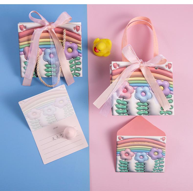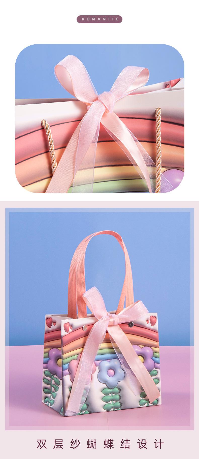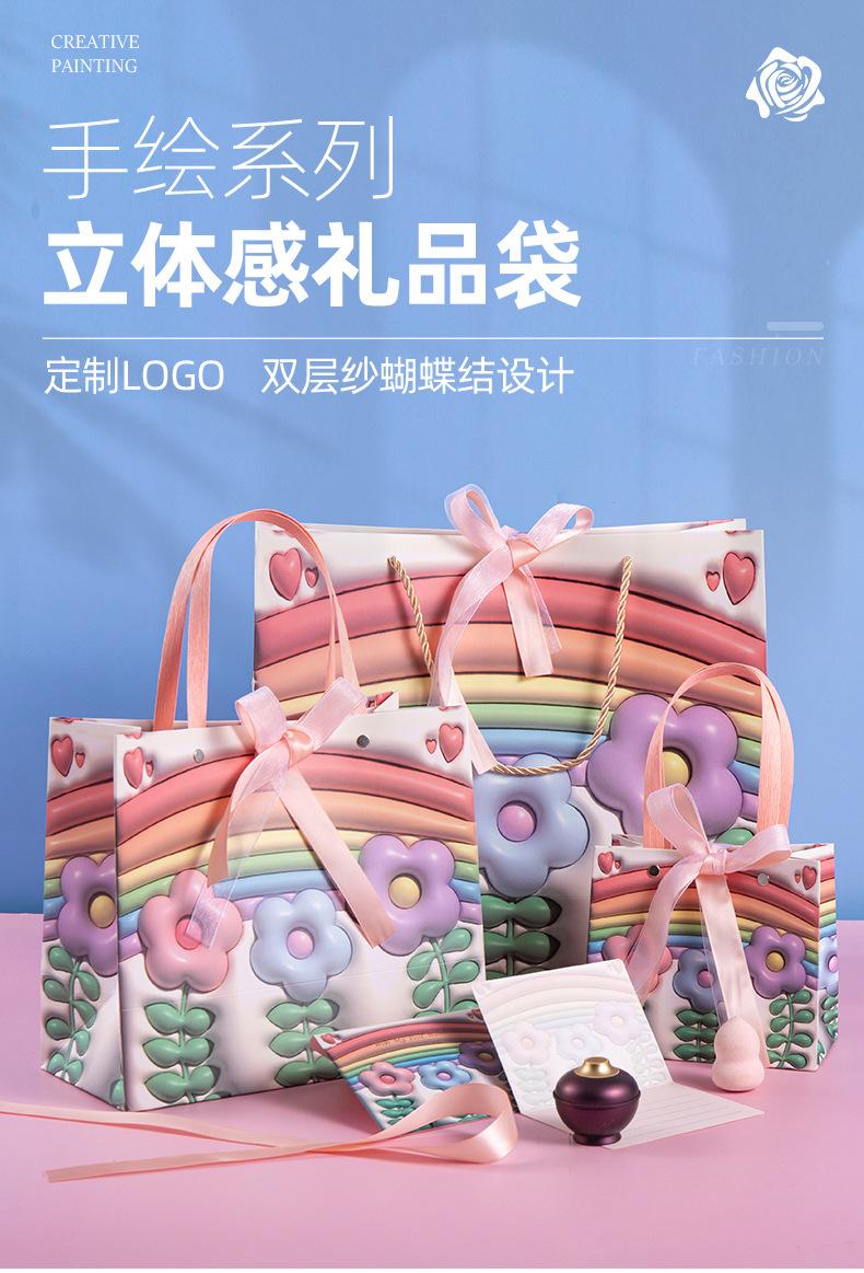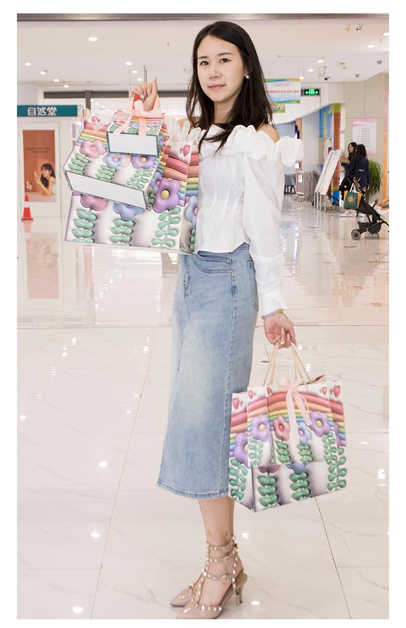 Bolsa de regalo para el Día del Niño con diseño de flores de arcoíris, bolsa grande para compras, bolsa para ropa de cumpleaños de niña, bolsa para empaquetar regalos, bolso de mano