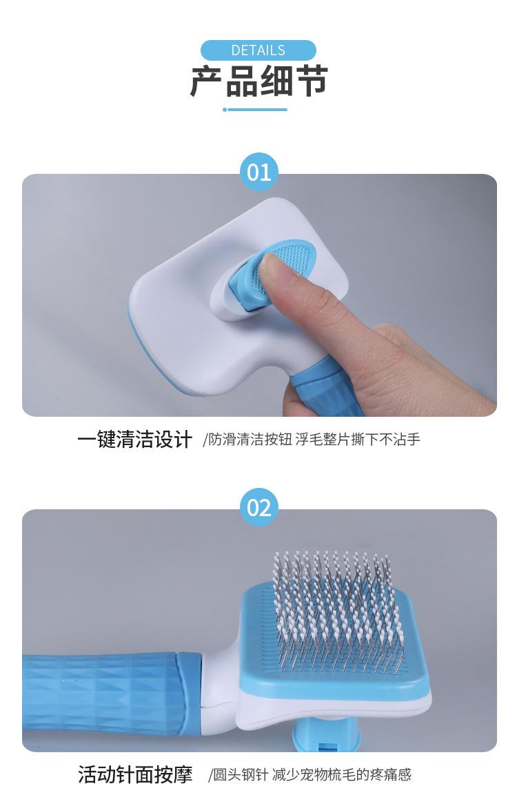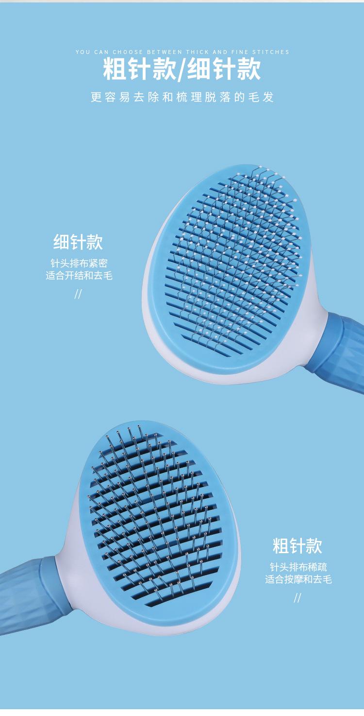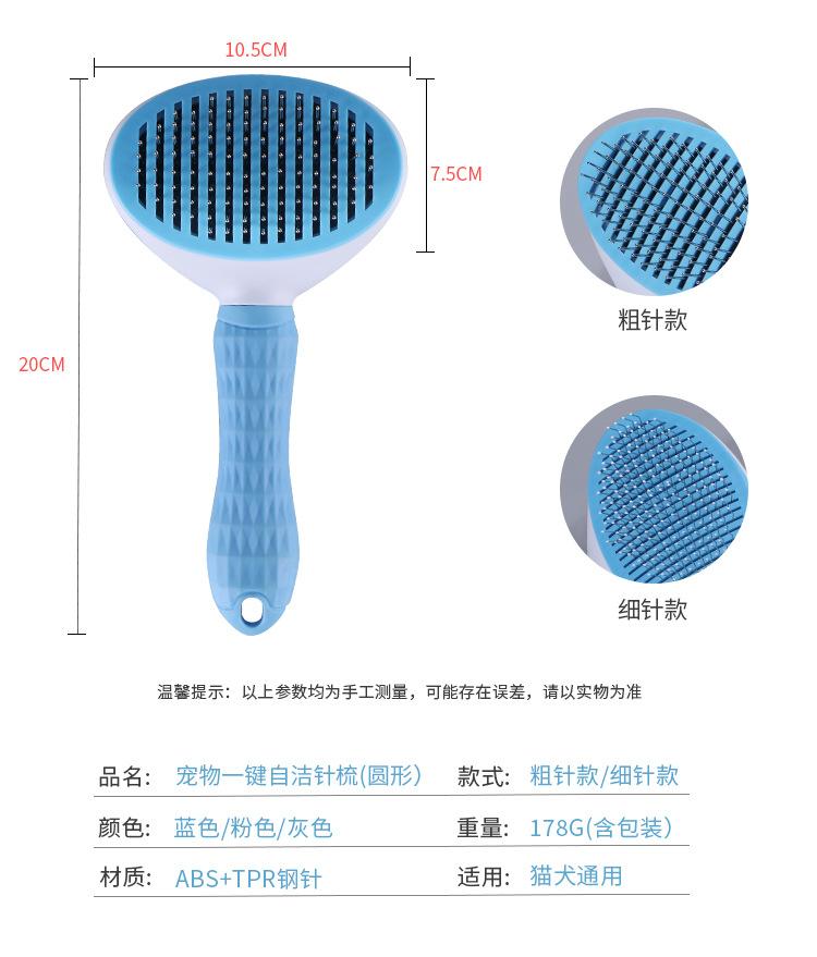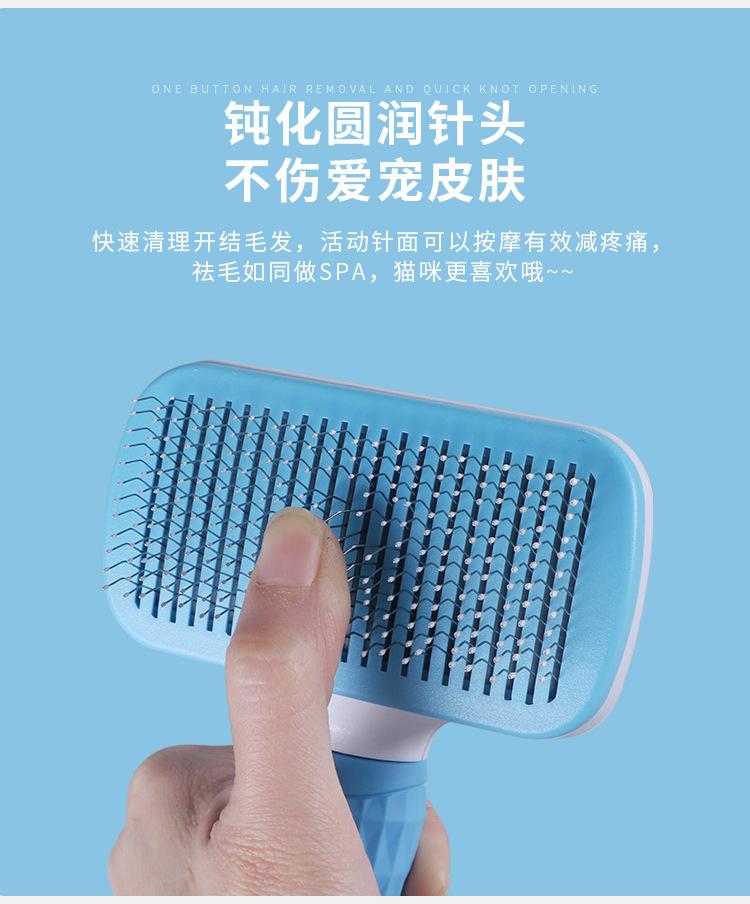 [Descripción del producto]: Cuando las mascotas mudan su pelaje durante las estaciones, el pelo se acumula en sus cuerpos, lo cual trae muchos problemas a las mascotas mismas y a la higiene del hogar. Este producto utiliza una aguja de acero inoxidable con un diseño integrado de cabeza redonda. También puede desempeñar un papel de masaje mientras peina el pelo de la mascota, resolviendo el problema del pelo en el cuerpo de la mascota y el problema de higiene en casa.
