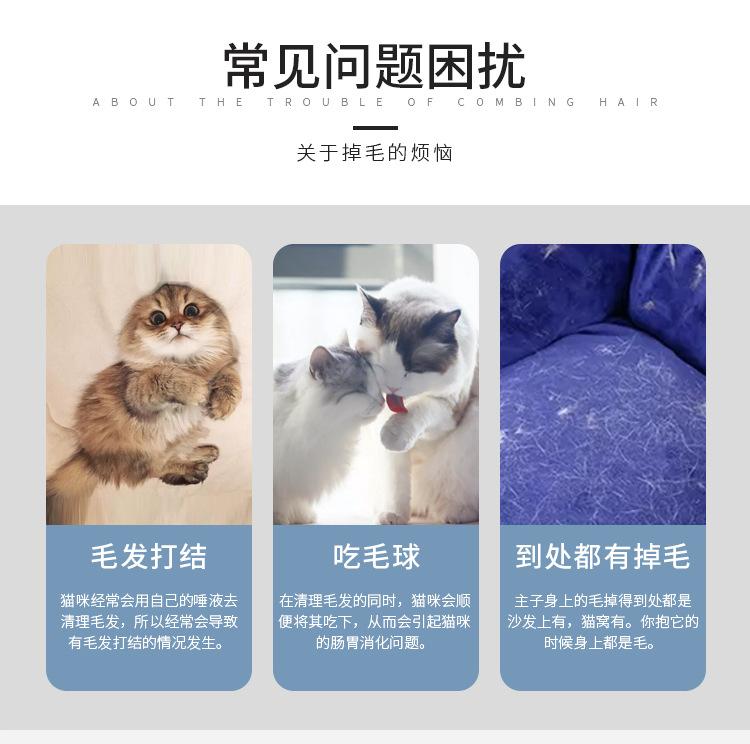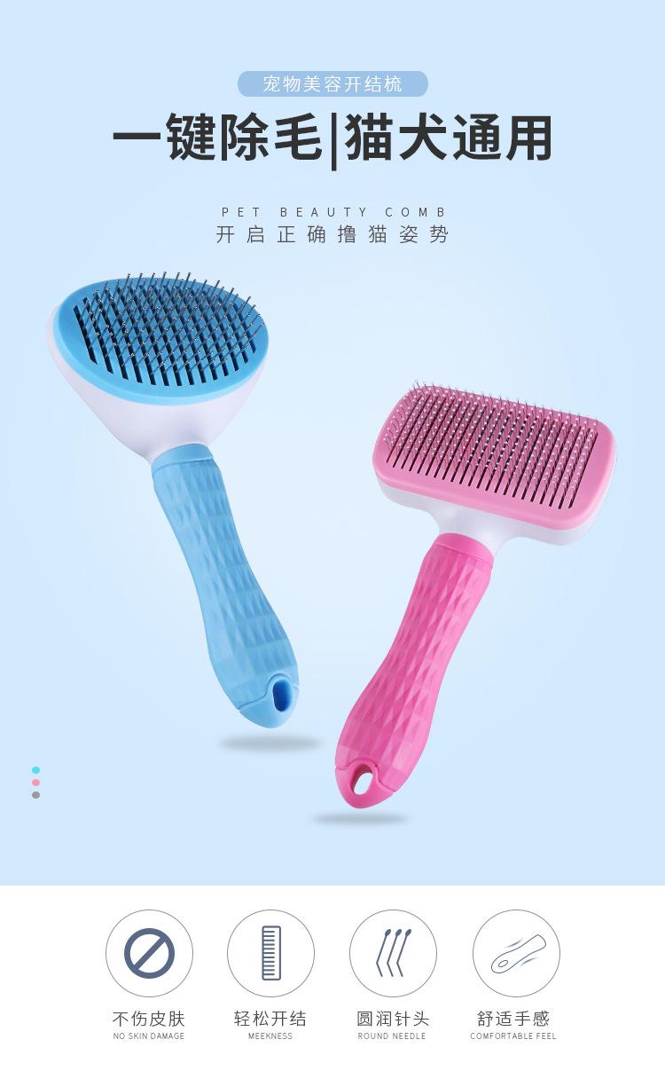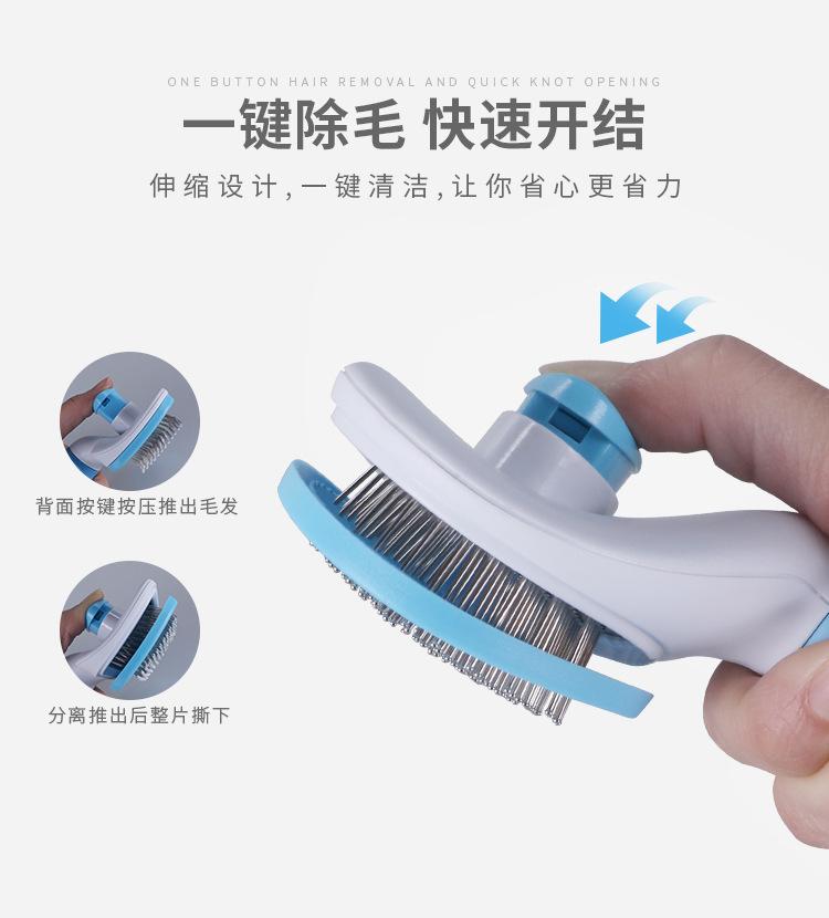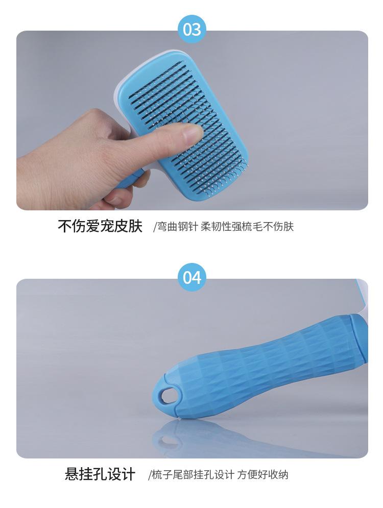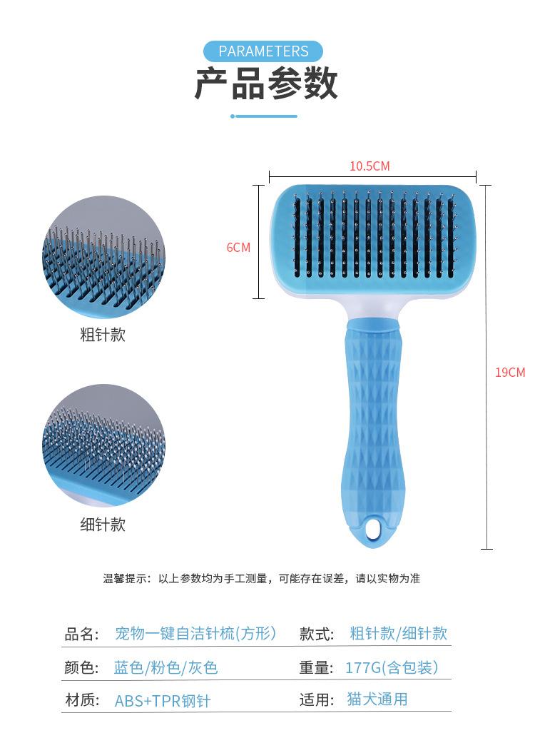 [Descripción del producto]: Cuando las mascotas mudan su pelaje durante las estaciones, el pelo se acumula en sus cuerpos, lo cual trae muchos problemas a las mascotas mismas y a la higiene del hogar. Este producto utiliza una aguja de acero inoxidable con un diseño integrado de cabeza redonda. También puede desempeñar un papel de masaje mientras peina el pelo de la mascota, resolviendo el problema del pelo en el cuerpo de la mascota y el problema de higiene en casa.