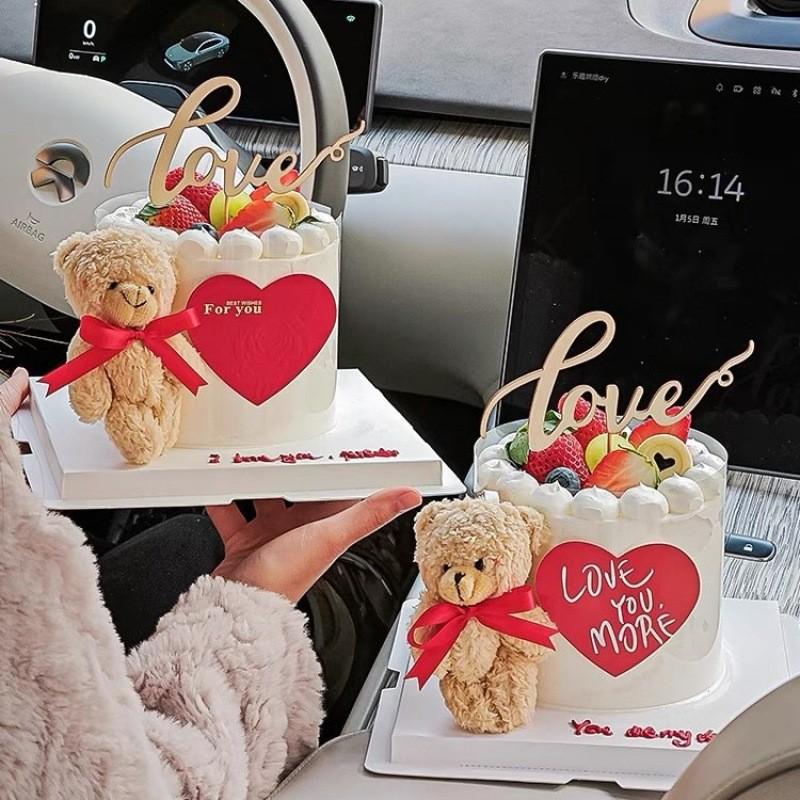 Oso de peluche de madera con pajarita marrón para San Valentín, decoración para tarta, mesa de postres de cumpleaños, complemento para vestir