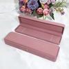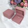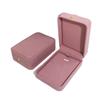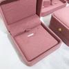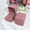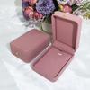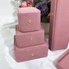 Nueva caja de joyería de franela rosa redondeada con botón dorado para anillos, collares y pulseras, caja de embalaje para joyería de moda