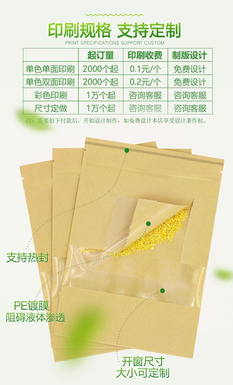 Bolsa de papel kraft con ventana transparente, bolsa para envasar alimentos de azufaifo, bolsa de té con autosellado, bolsa de papel kraft sellada de varios tamaños