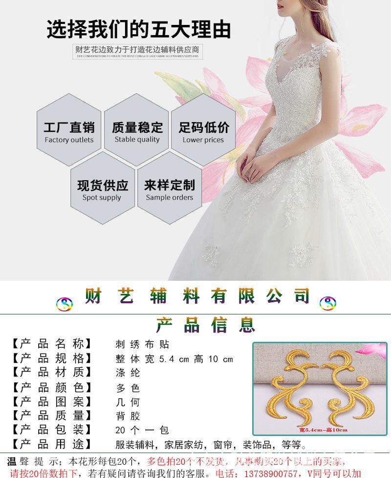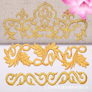 Parche de tela bordado por computadora con encaje Yiwu, accesorios de ropa, parche adhesivo, hilo dorado, estampado en caliente
