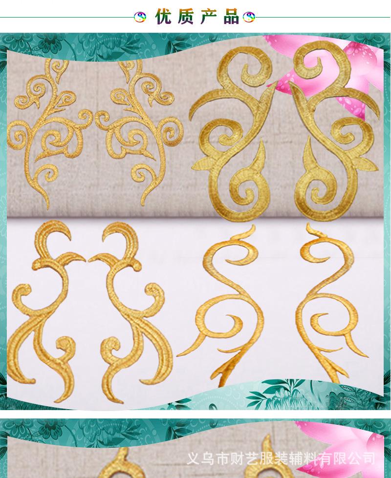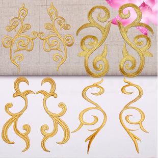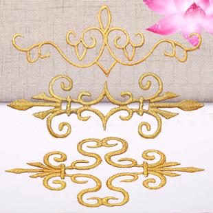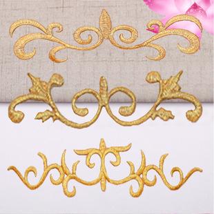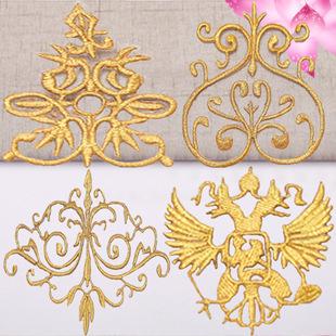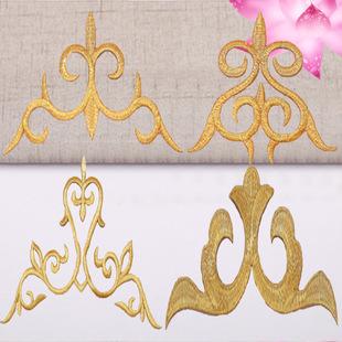 Fabricantes al por mayor de nuevos parches de tela con bordado por computadora con estampado en caliente, parche adhesivo para vestuario escénico, con hilo dorado