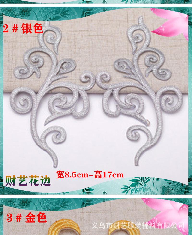 Fábrica de bordado por computadora, exquisita cinta adhesiva bordada, parche para planchar, parche para ropa, hilo dorado y plateado, flor larga y caliente