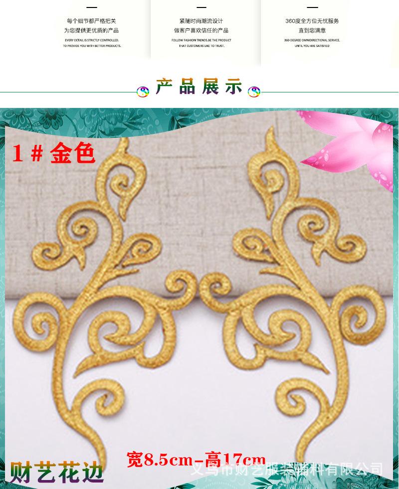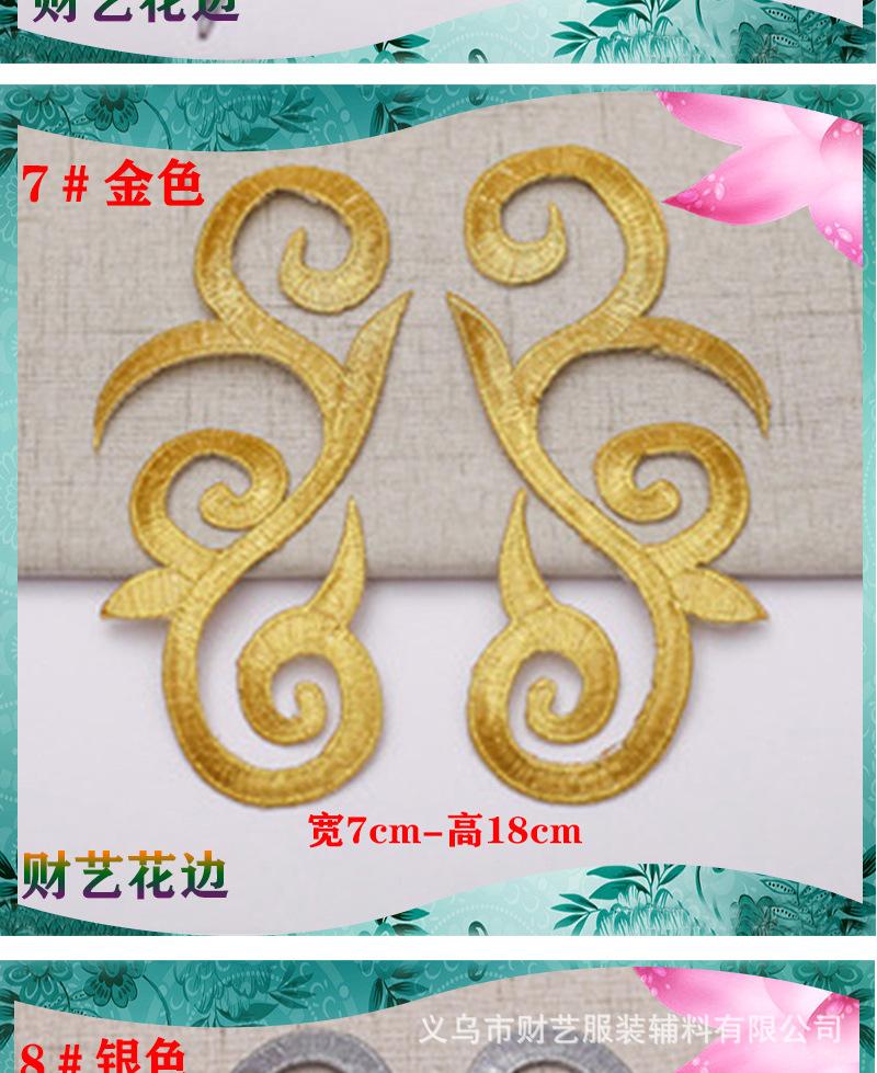Fabricantes al por mayor de parches bordados por computadora, parches bordados con hilo dorado y plateado, parches para vestuario escénico, flores de planchado de nubes auspiciosas