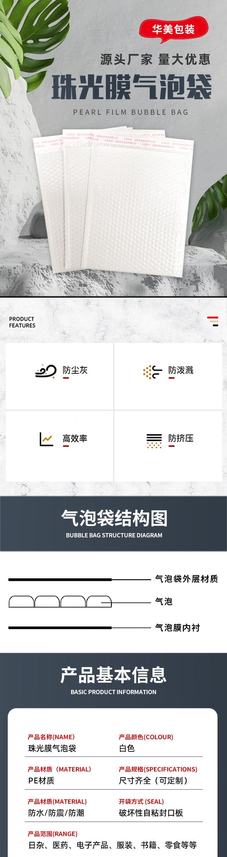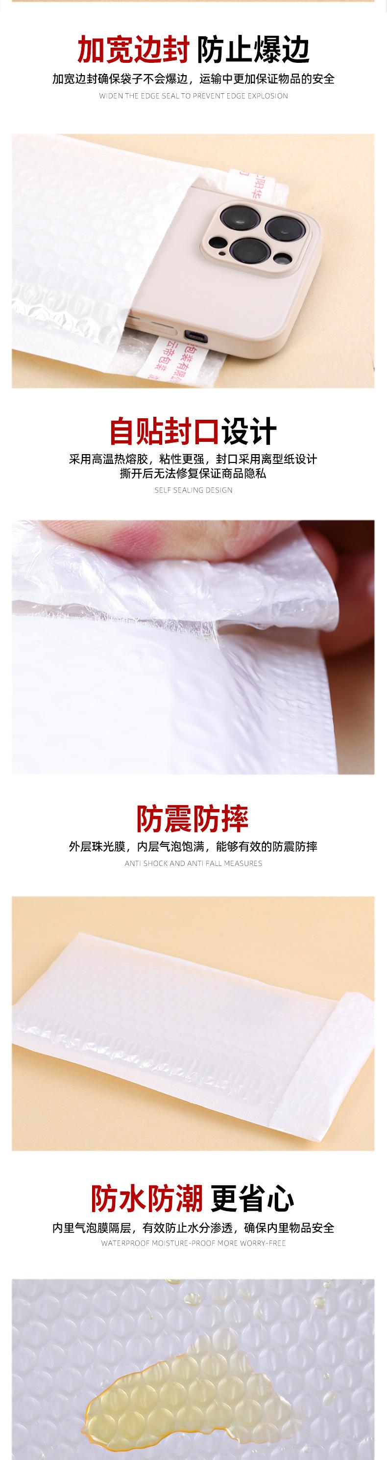 Bolsa de burbujas con película perlada compuesta, embalaje exprés, bolsa de burbujas blanca a prueba de golpes, bolsa de espuma gruesa para archivos