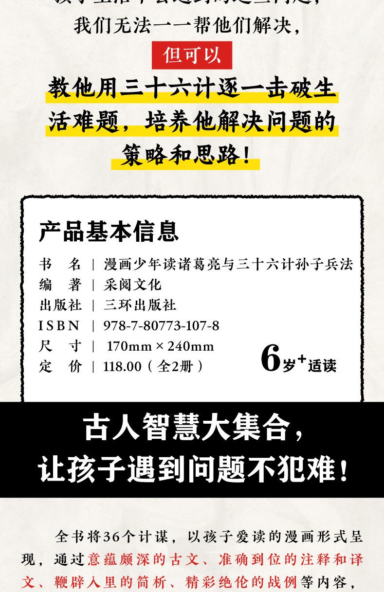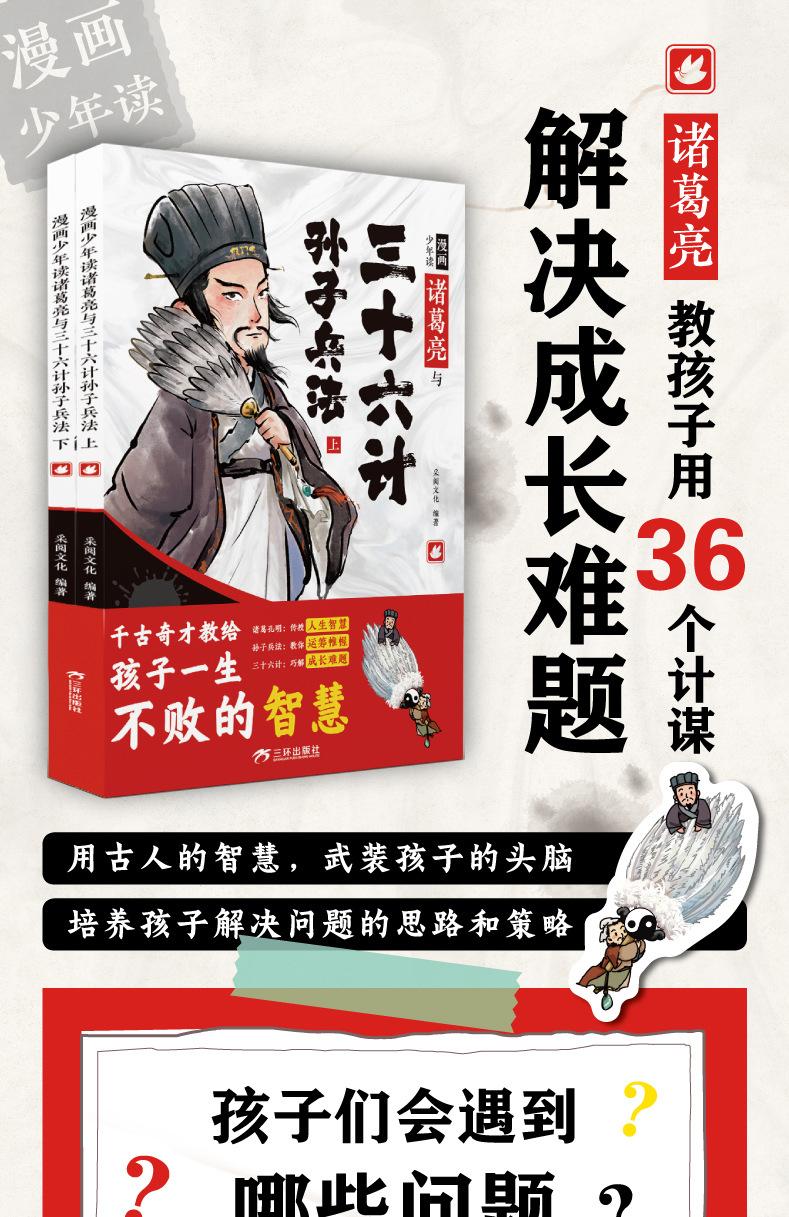 "6-15 Años" Dibujos Animados Adolescentes Leen Zhuge Liang y Treinta y seis Estratagemas El Arte de la Guerra de Sun Tzu Juego Completo Genuino de Libros para Niños