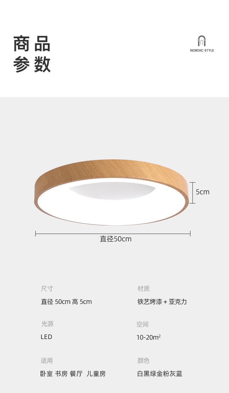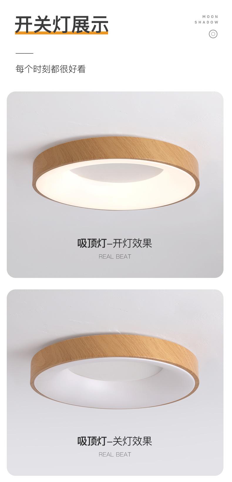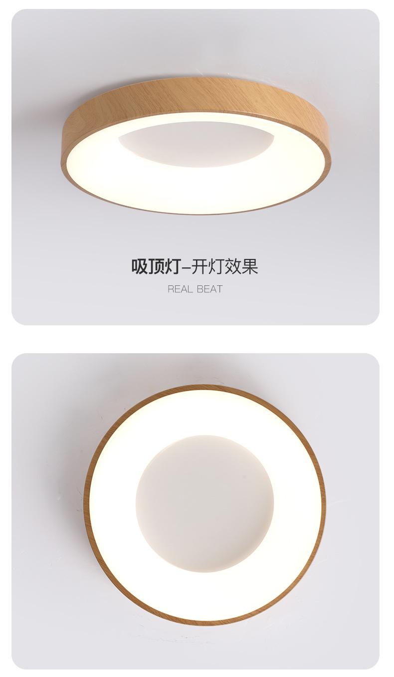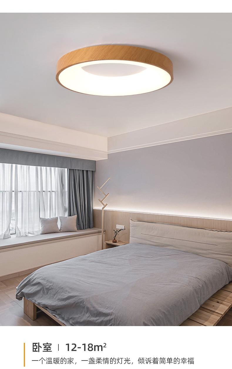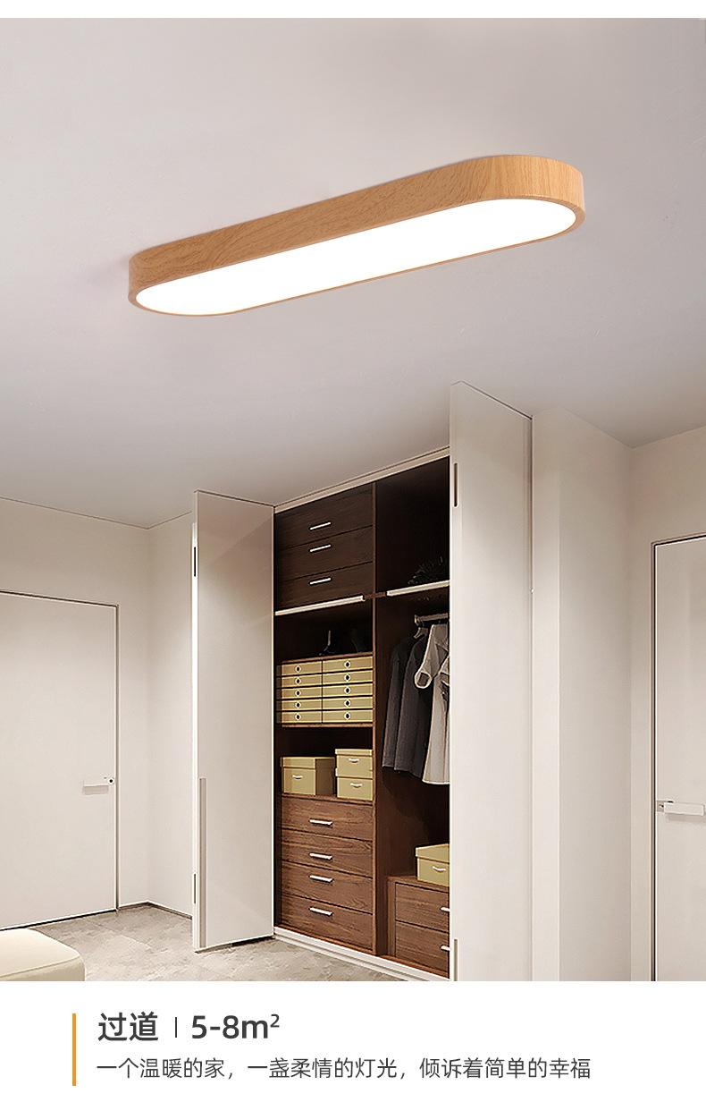 Lámpara de techo redonda de grano de madera ultrafina para dormitorio de celebridad de internet, lámpara de sala de estar con tira para pasillo creativa simple moderna
