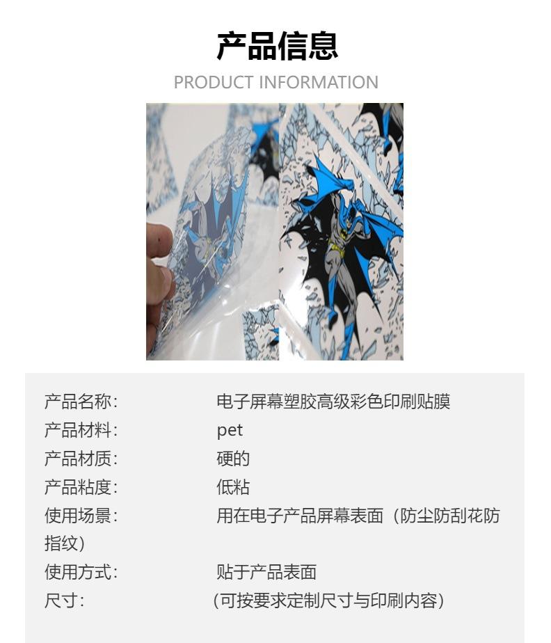 Película protectora transparente para mascotas, de baja adherencia, para pantalla electrónica, de plástico, película de impresión a color avanzada, película para tarjetas pequeñas de Batman