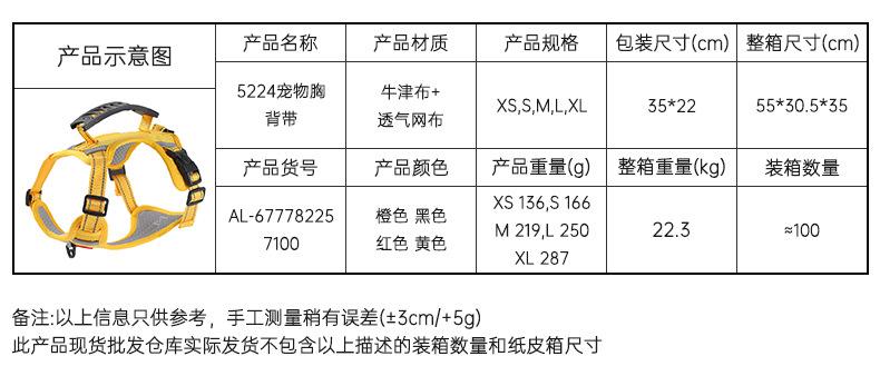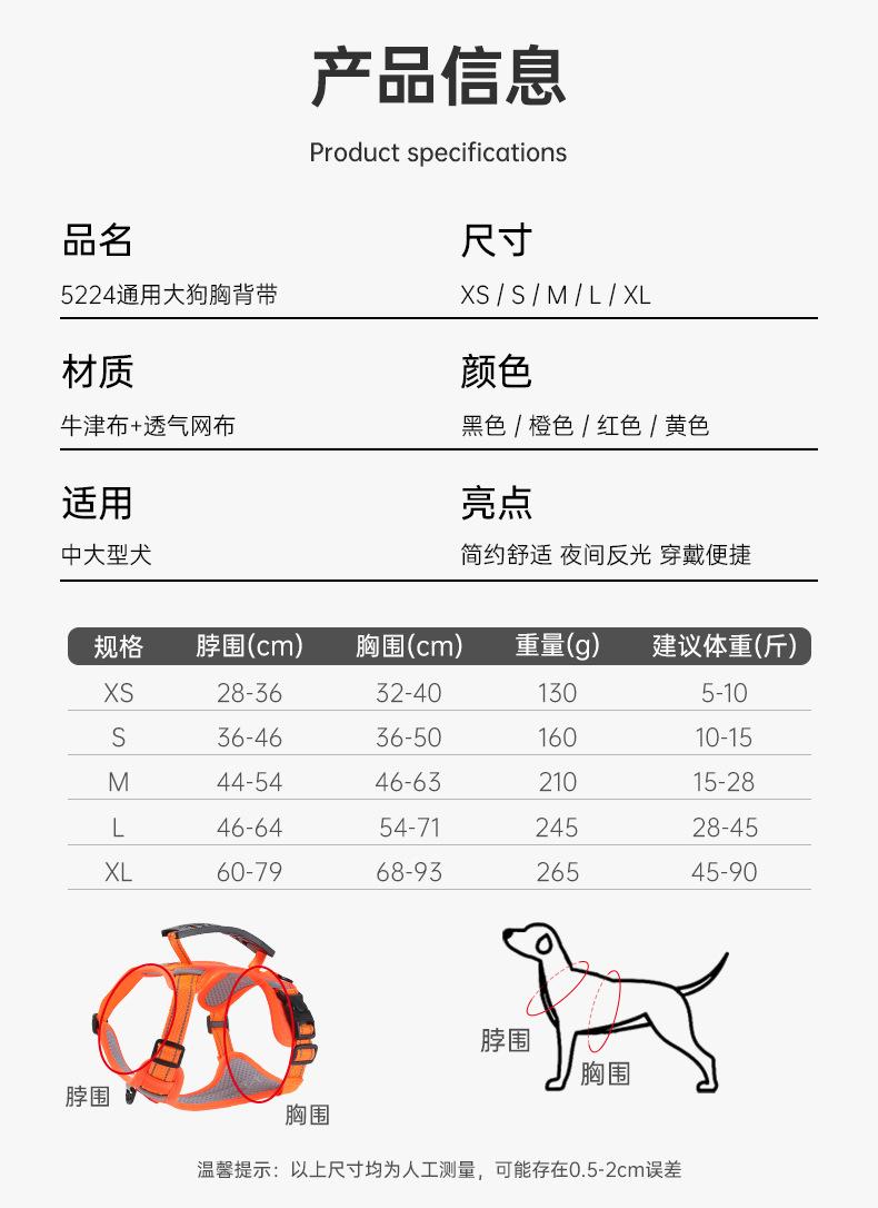 Xs【 2.5-5kg 】, S【 5-7.5kg 】, M【 7.5-14kg 】, L【 14-22.5kg 】, Xl【 22.5-45kg 】