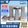 Tornillo de medio diente de acero inoxidable 304, perno hexagonal exterior, tornillo de cabeza hexagonal, sujetador M6/M8/M10/M12