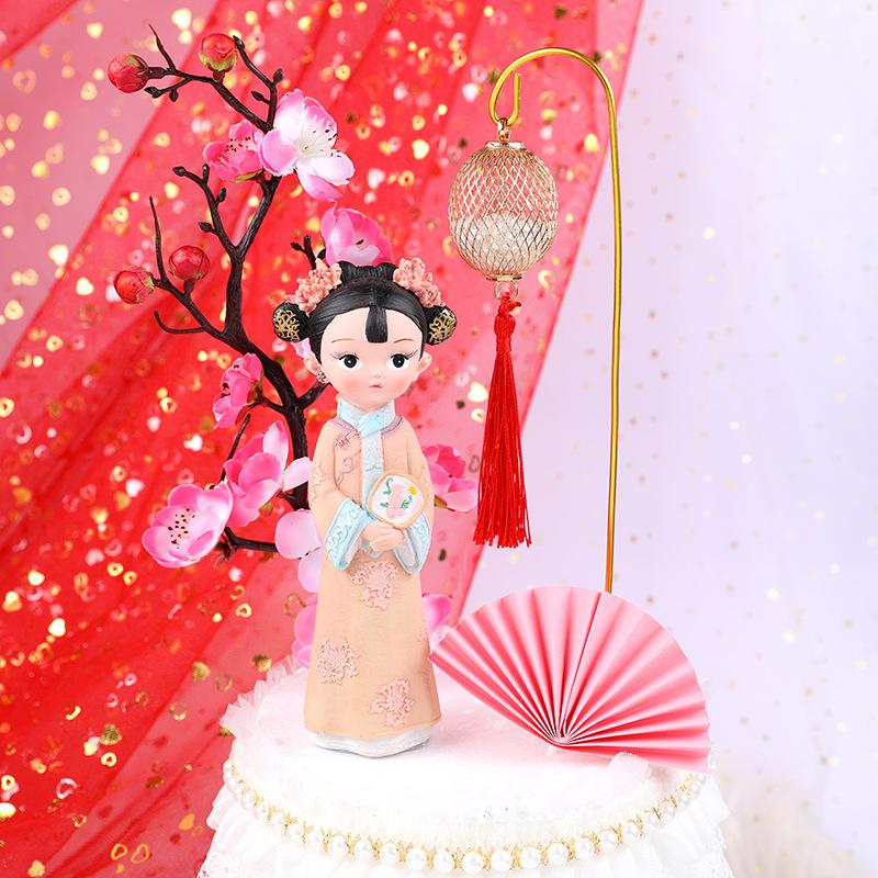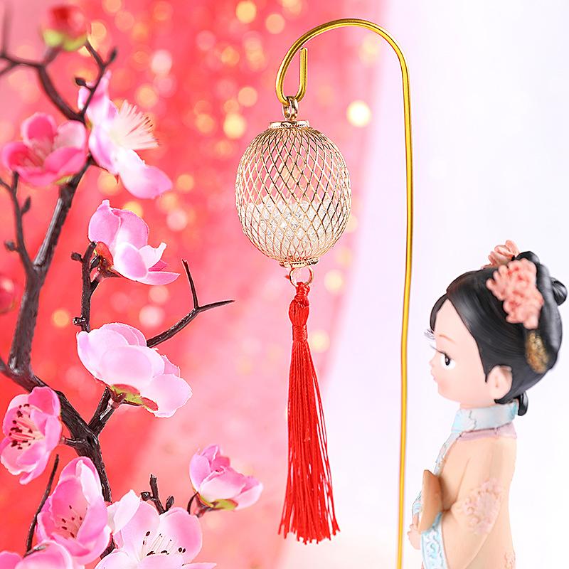 Decoración para pastel horneado estilo chino linterna de borlas de hierro enchufable adornos para decoración de pastel de fiesta de cumpleaños