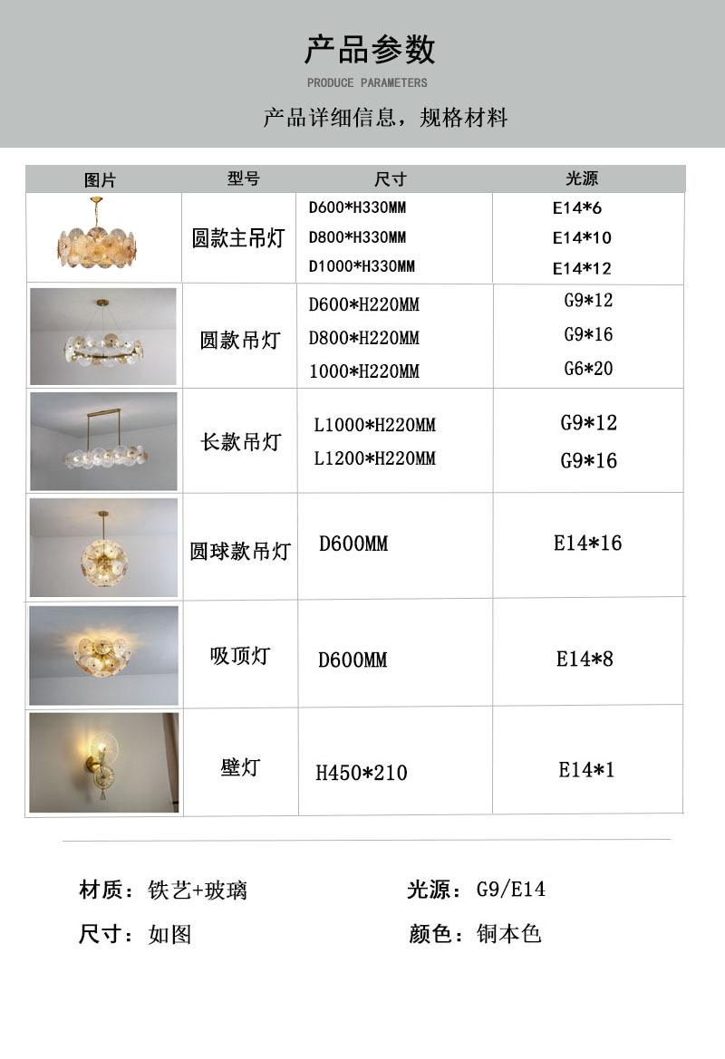 Round chandelier D600, Round D800, Round D1000, Long L1000 * H220, Long L1200 * H220, Spherical chandelier D60...