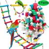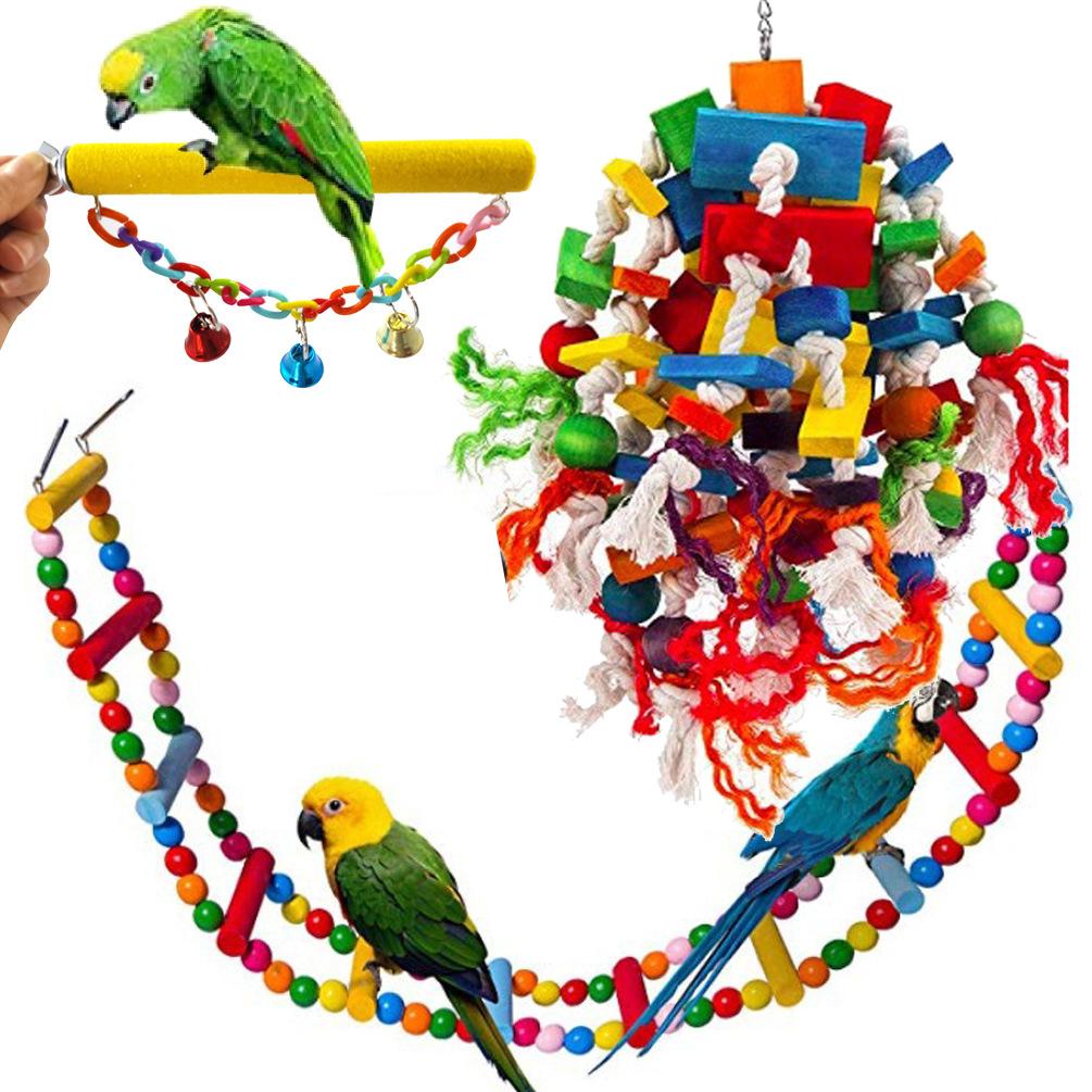 Juguetes para masticar loros, juguetes para pájaros, bloques de construcción coloridos, cuerda grande, palo esmerilado, escalera, columpio, juego de 3 piezas