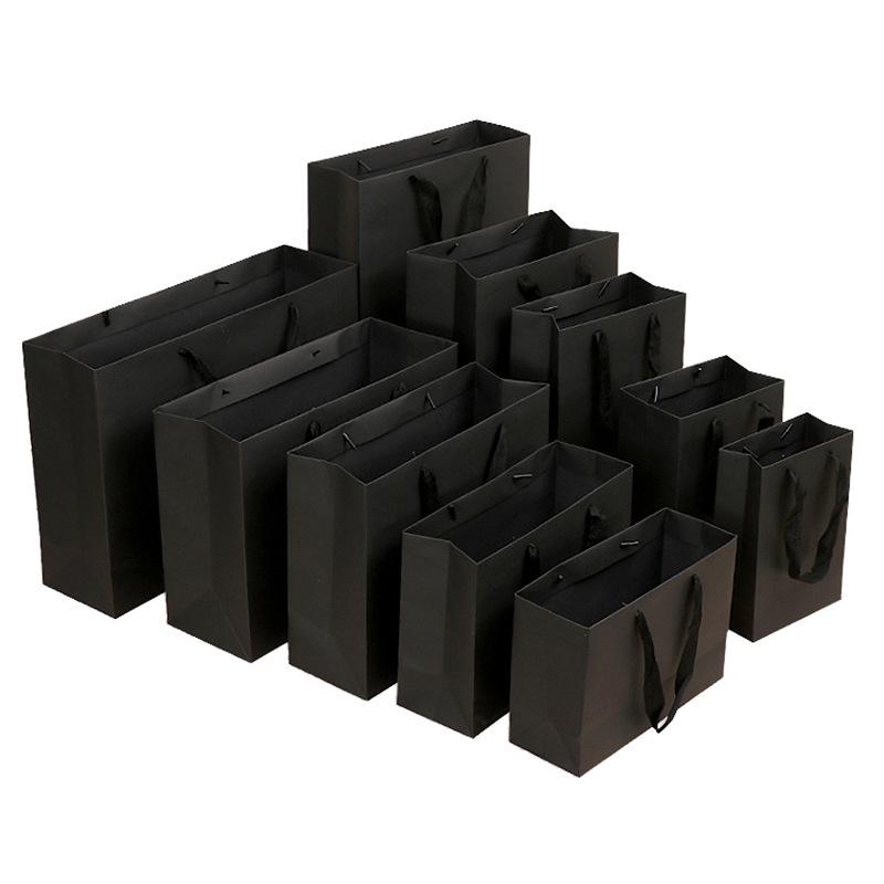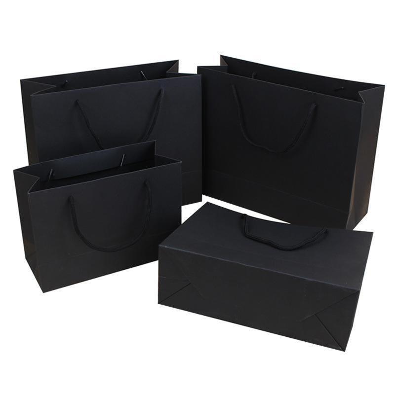 En stock Ropa Papel de Regalo Bolsa Blanca de Compras Imprimible LOGO Bronceado Bolsa de Mano de Cartón Negro