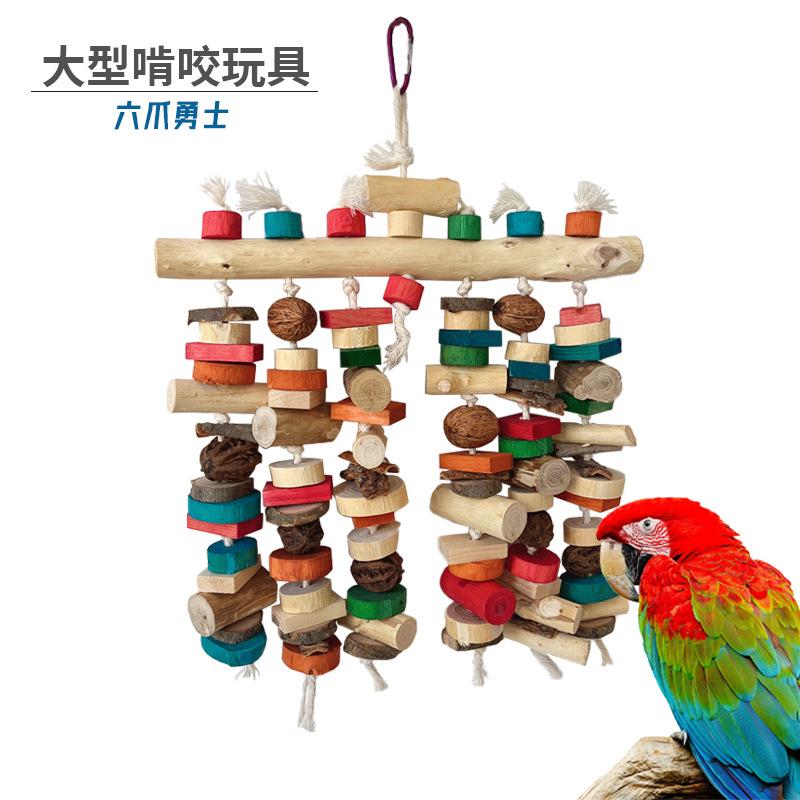 Guacamayo Amazonas juguete juguete para pájaros medianos y grandes soporte de madera maciza para loros cuerda para morder que alivia el aburrimiento y el daño por desgarro