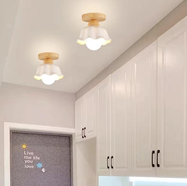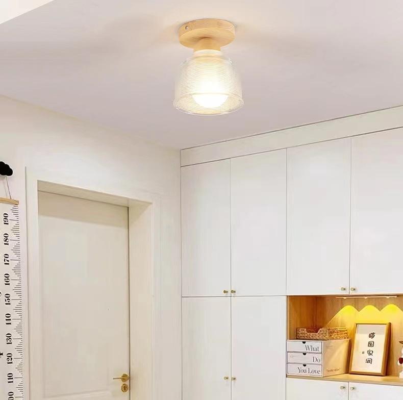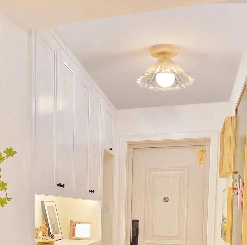 Lámpara de Techo de Madera Maciza Escandinava Moderna Minimalista para Pasillo Balcón Led Creativa B&B Entrada Bar Lámpara de Techo de Cristal