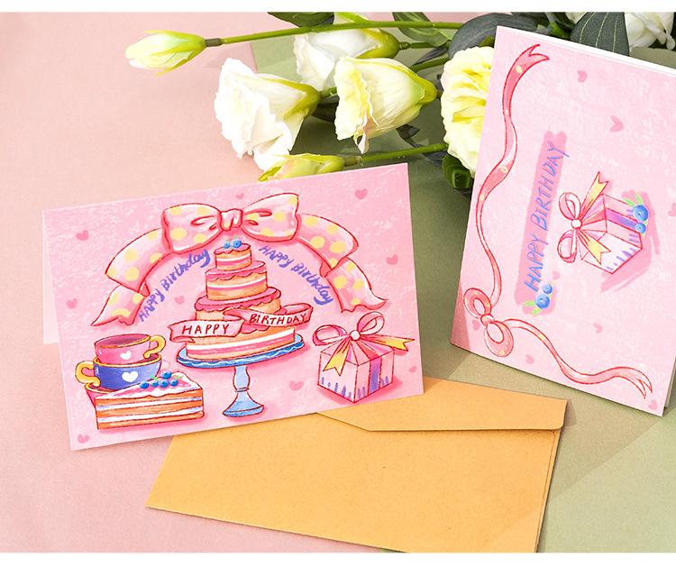 Tarjeta de cumpleaños nueva pintada a mano transfronteriza tarjeta plegable sobre tarjeta de agradecimiento de cumpleaños para niños tarjeta pequeña al por mayor