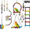 Juguete para loro de 10 piezas, juguete para pájaro, escalera, cadena colgante, columpio, campana, bola, masticable, bola de ratán masticable, combinación de juguetes para masticar