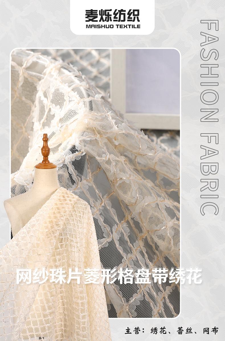 Tela bordada con lentejuelas y disco de malla, tela bordada con rejilla de diamantes, tela bordada para vestidos de boda y moda.
