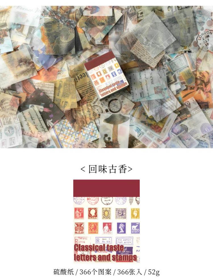 Transfronterizo Hecho a mano Serie temporal 366 Material de papel de ácido sulfúrico Collage Esta Cuenta Retro Hecha a mano DIY Papel base decorativo 4