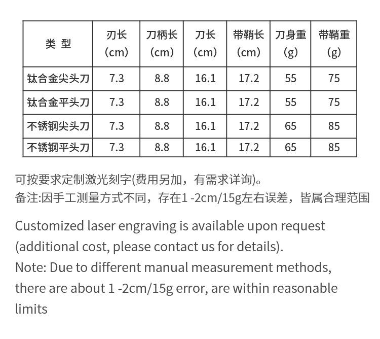 Stainless steel pointed, Stainless steel flat head, Titanium alloy pointed, Titanium alloy flat head