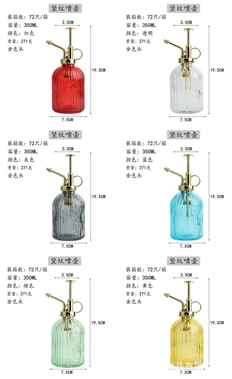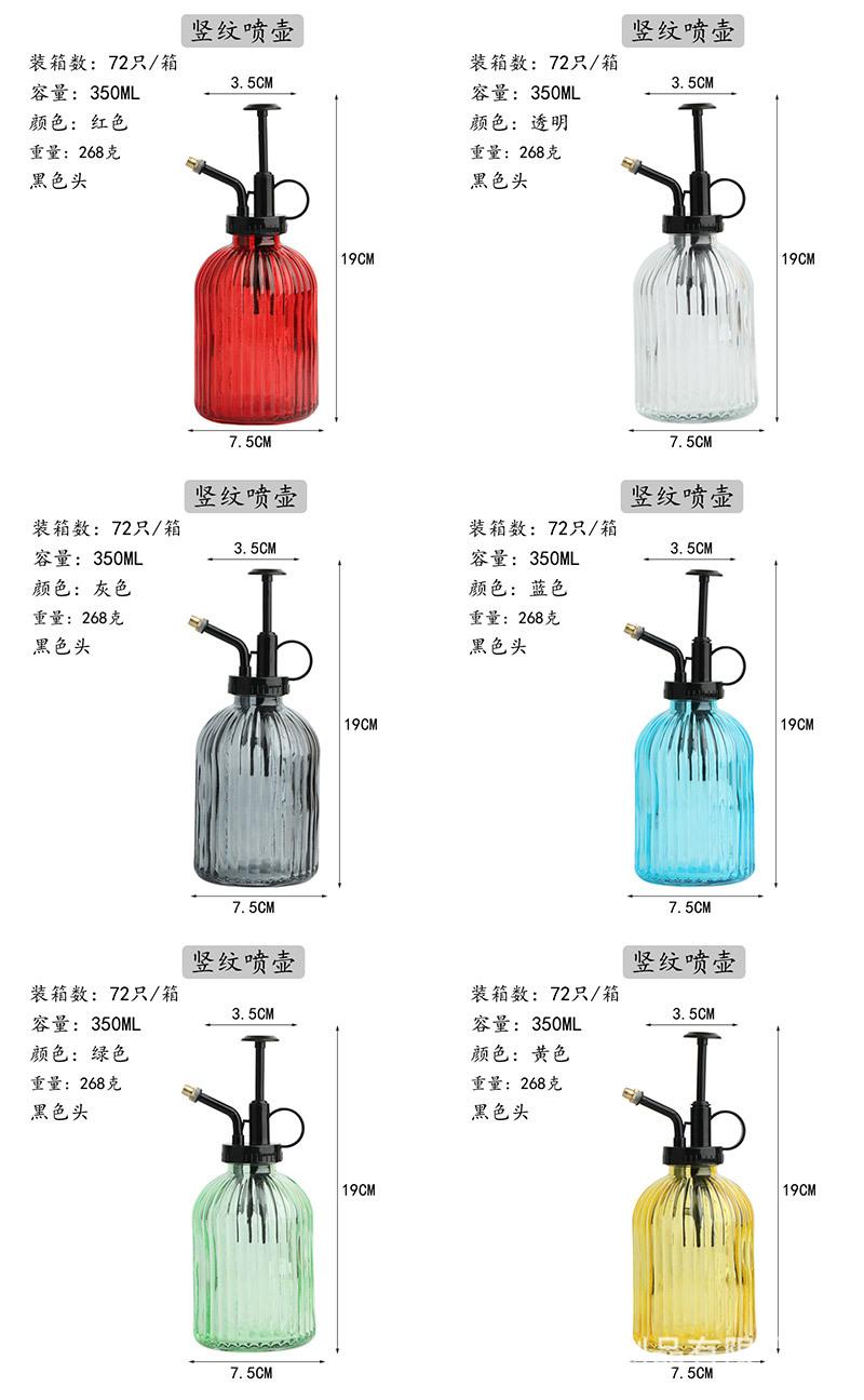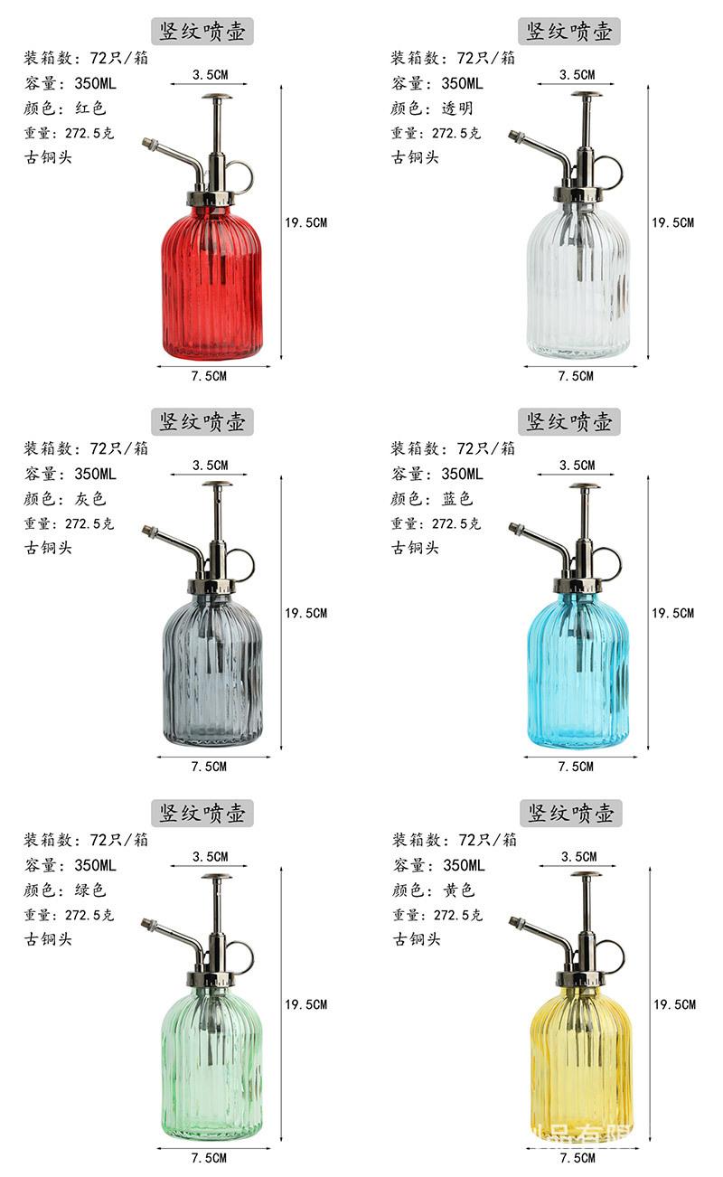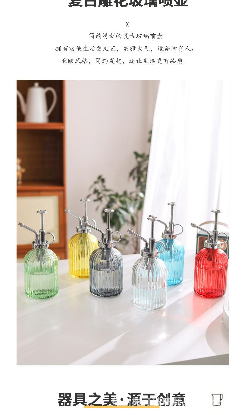 Regadera de Vidrio con Patrón Vertical de 350 ml Pulverizador a Presión Regadera Jardinería Doméstica Regadera Botella de Spray para Suculentas