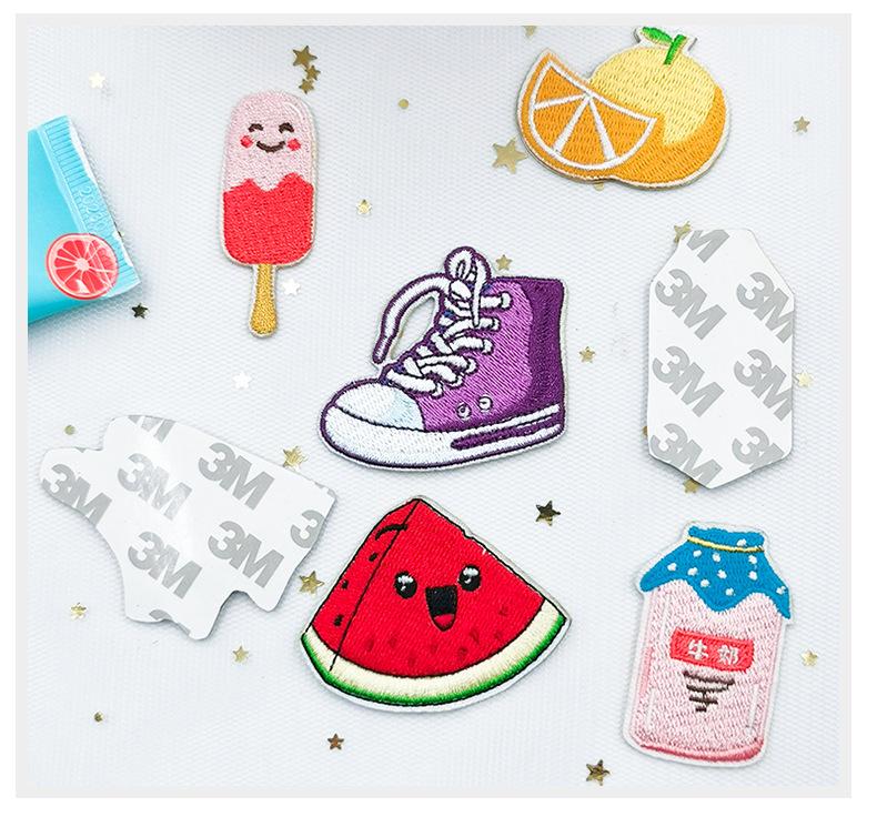 Fábrica de bordado mayoreo lindos accesorios de dibujos animados calcomanías de tela fruta parche diy bordado calcomanías para bolsa autoadhesivas