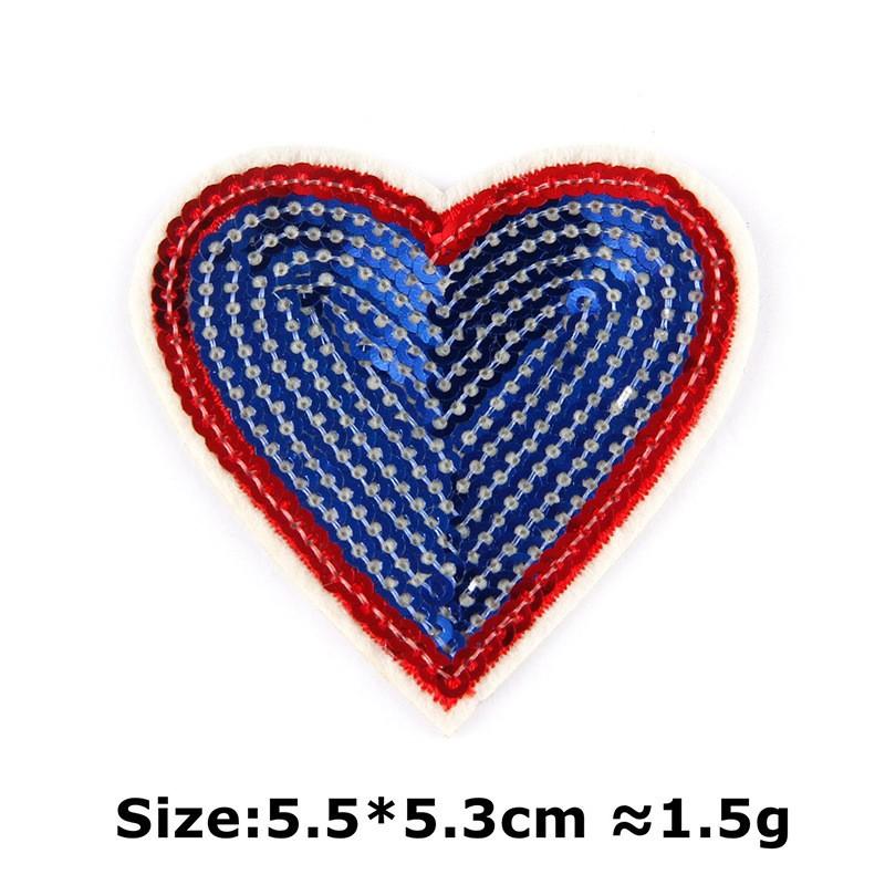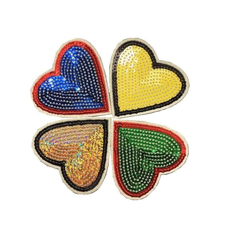 Fábrica de Bordado de Dongguan Bordado de Lentejuelas Coloridas Corazón Bordado de Lentejuelas Parches de Tela Decorativos Parches de Bordado Parches de Aplique Parches de Tela
