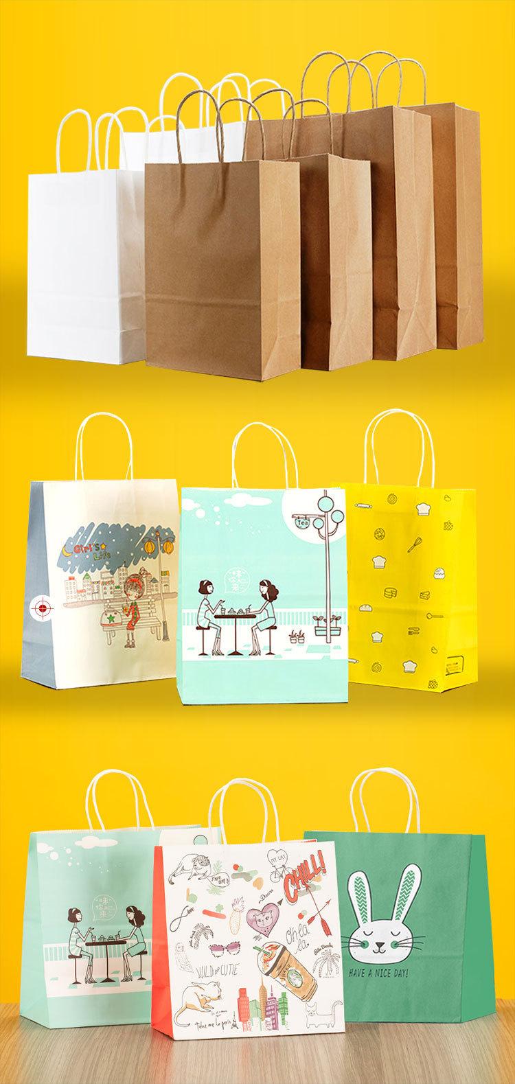 Bolsa de compras de ropa de regalo engrosada para llevar, bolsa de embalaje para catering, bolsa de papel kraft, bolso de papel, se puede personalizar