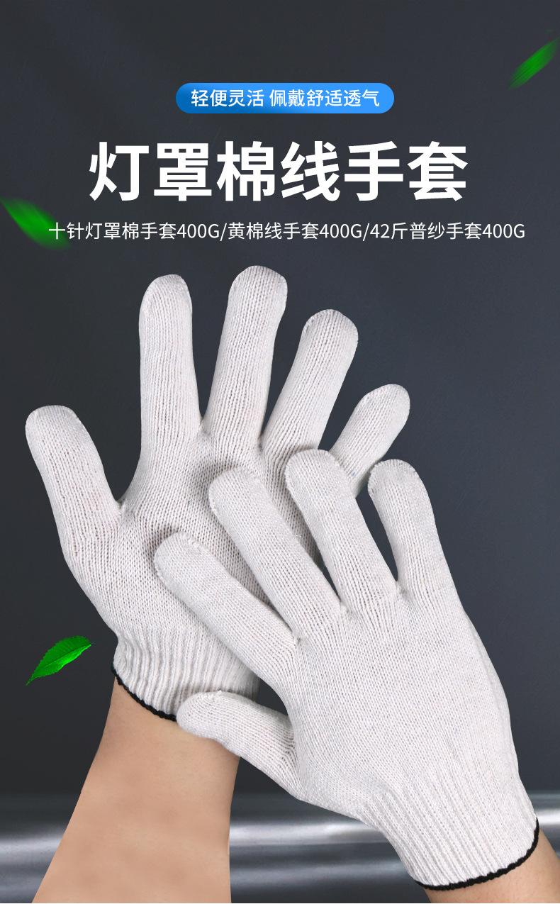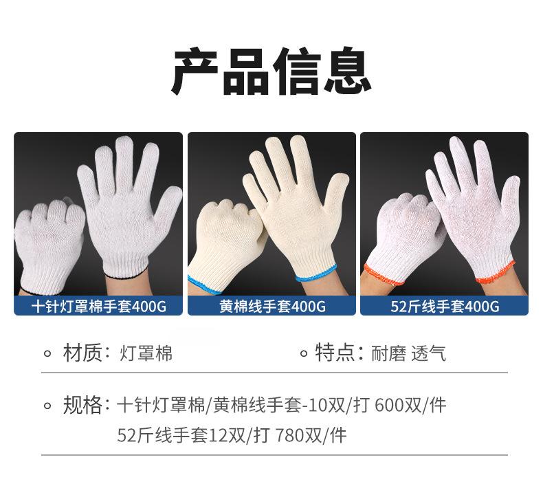 Guantes al por mayor de hilo de algodón de 400 g, guantes gruesos resistentes al desgaste, antideslizantes, pantalla de lámpara, guantes blancos de algodón, hilo de algodón amarillo, guantes de protección laboral