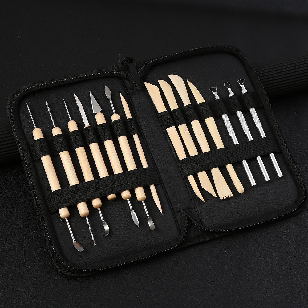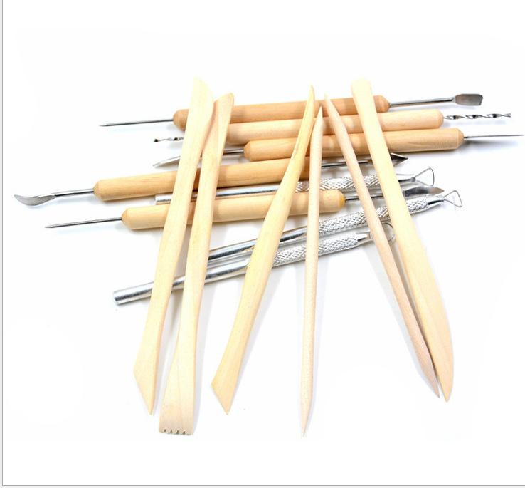 Juego de 14 herramientas de cerámica transfronterizas, arcilla, piedra, cerámica blanda, escultura de arcilla, cuchillo para tallar, barra de aluminio, juego de modelado de doble cabeza.