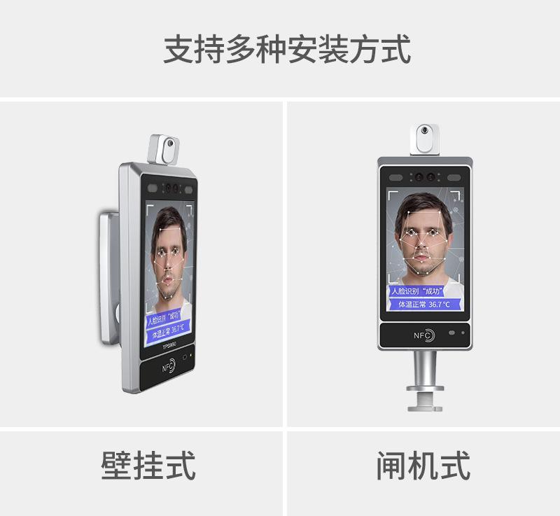 El termómetro dinámico de reconocimiento facial TPS980 admite múltiples métodos de instalación, incluyendo montaje en pared o en puerta, y soporta múltiples escenarios de negocio como el registro de temperatura mediante escaneo facial y el registro de temperatura mediante escaneo facial para que las empresas reanuden el trabajo.